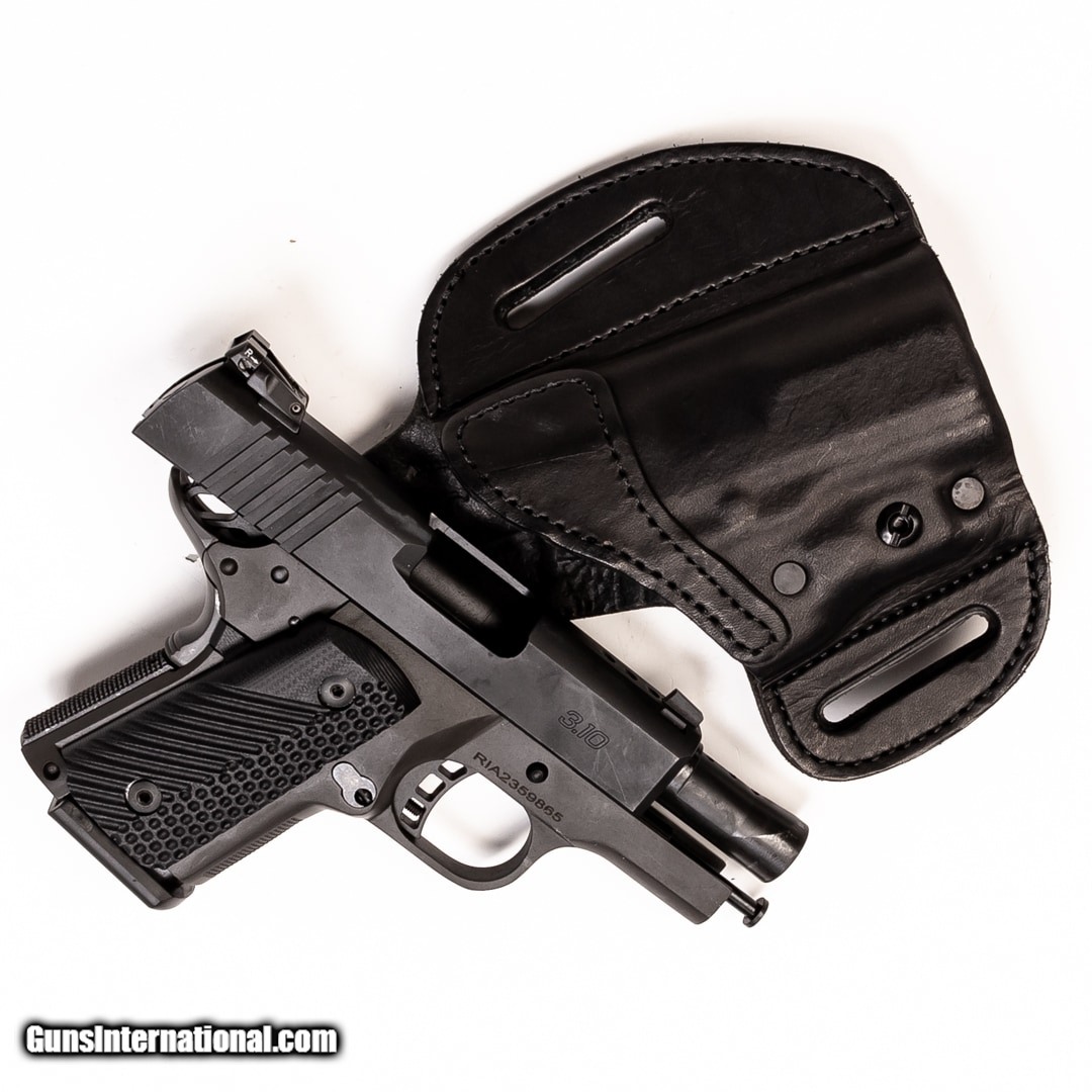 Description: Guns Listing ID: 488606 Rugged, powerful, and compact, the Rock Island Armory 3.10 is a scaled down 1911 for daily carry. This little gem can easily hide under clothes while daily carrying but offers immense punch when called into action. This handgun includes one 10-round magazine and a right-handed OWB holster. SOLD Manufacturer: ROCK ISLAND ARMORY Model: 3 Caliber Info: .45 ACP Condition: Used - Certified Barrels: 3.1 BARREL Finish: BLACK |