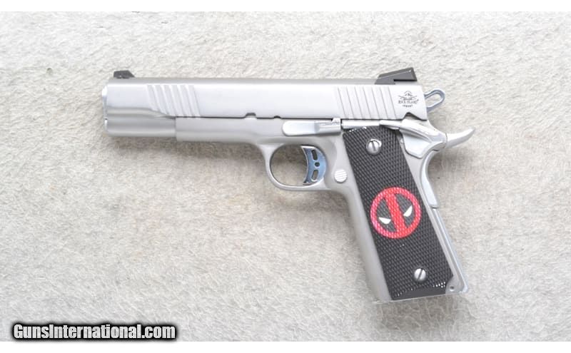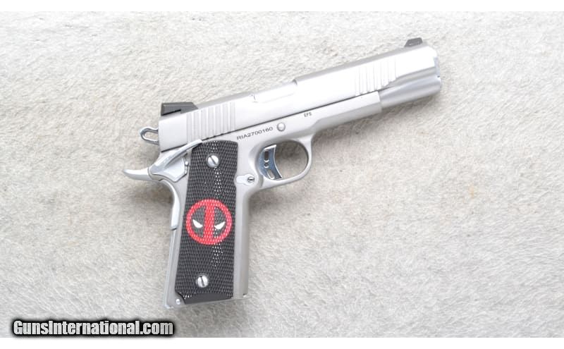 Description: This Rock Island Armory Model EFS is a stainless steel right hand semi-auto pistol in .45 ACP Cal. It has a 5 inch barrel with a front and rear serrated slide. A blade front sight and notch rear sight. The grip is a checkered black composite. The back strap is grooved. .45 ACP SOLD Chambers: 8 round magazine. Metal Condition: Good. Shows some light use marks. Bore Condition: Very Good. Barrels: 5 inch barrel with a front and rear serrated slide. Weight: 46 oz. Sights: Blade front. Notch rear. Item Location: Richfield, WI |
