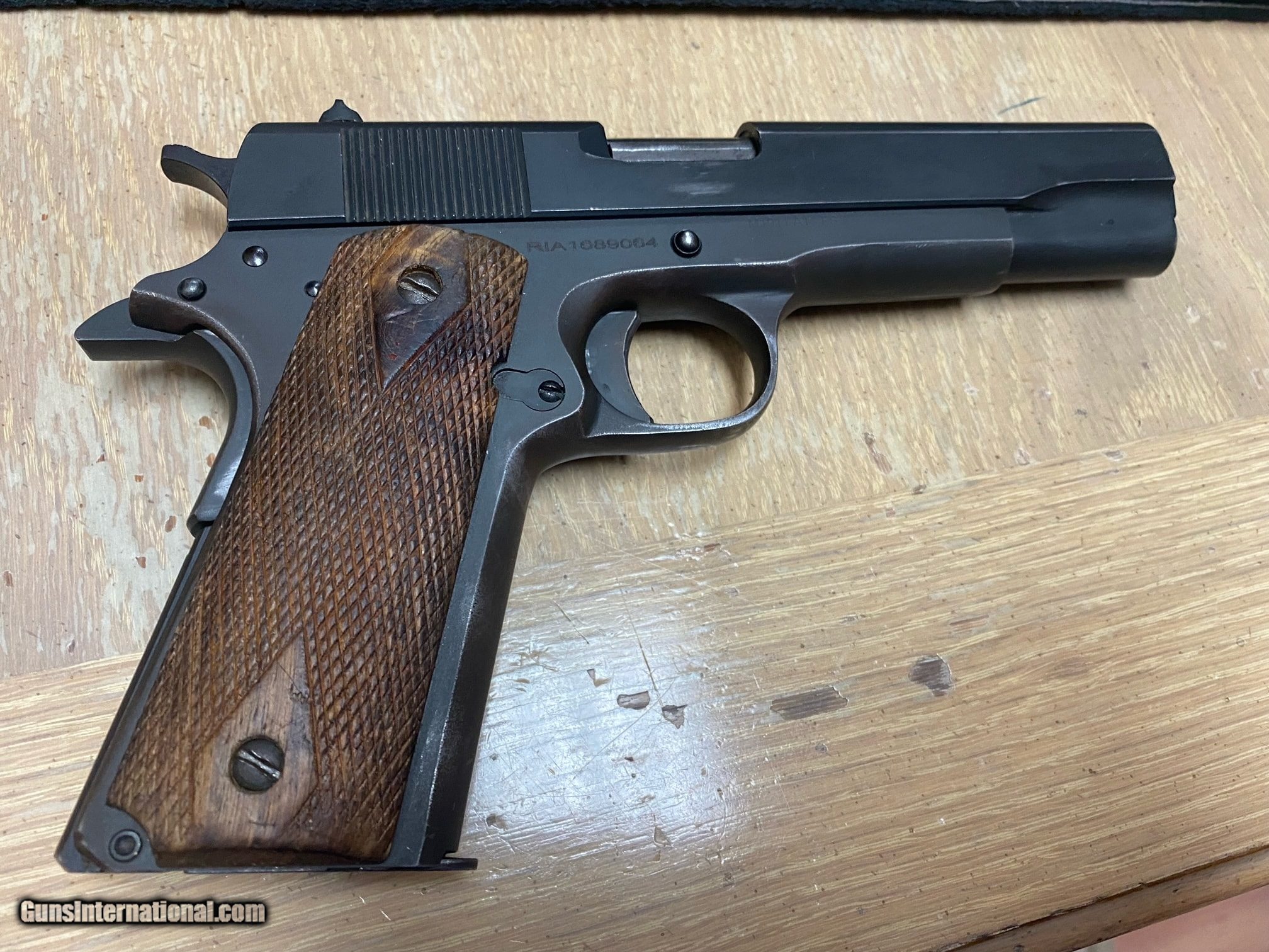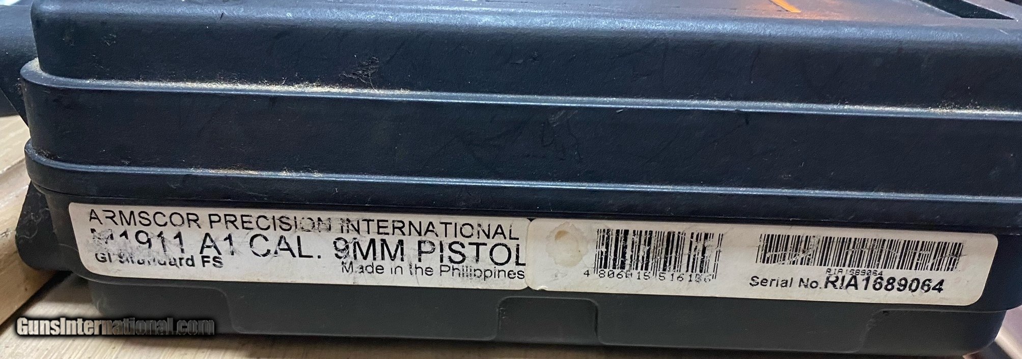 Description: Guns Listing ID: 478062 Up for sale is a Used - Excellent Condition Rock Island 1911A1 9mm 5\" 9+1 w/Factory Matching Box. Pistol is used, in estimated 85% condition overall, there is handling wear throughout, excellent mechanical condition with sharp cut rifling in bore as shown. SOLD Manufacturer: ROCK ISLAND ARMORY Model: GI STANDARD FS Caliber Info: 9 MM LUGER Condition: Used - Non-Certified Barrels: 5" barrel |