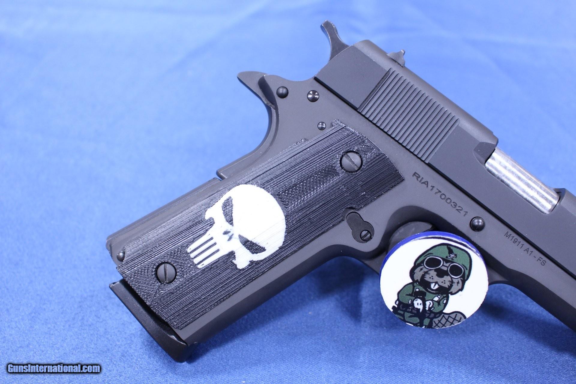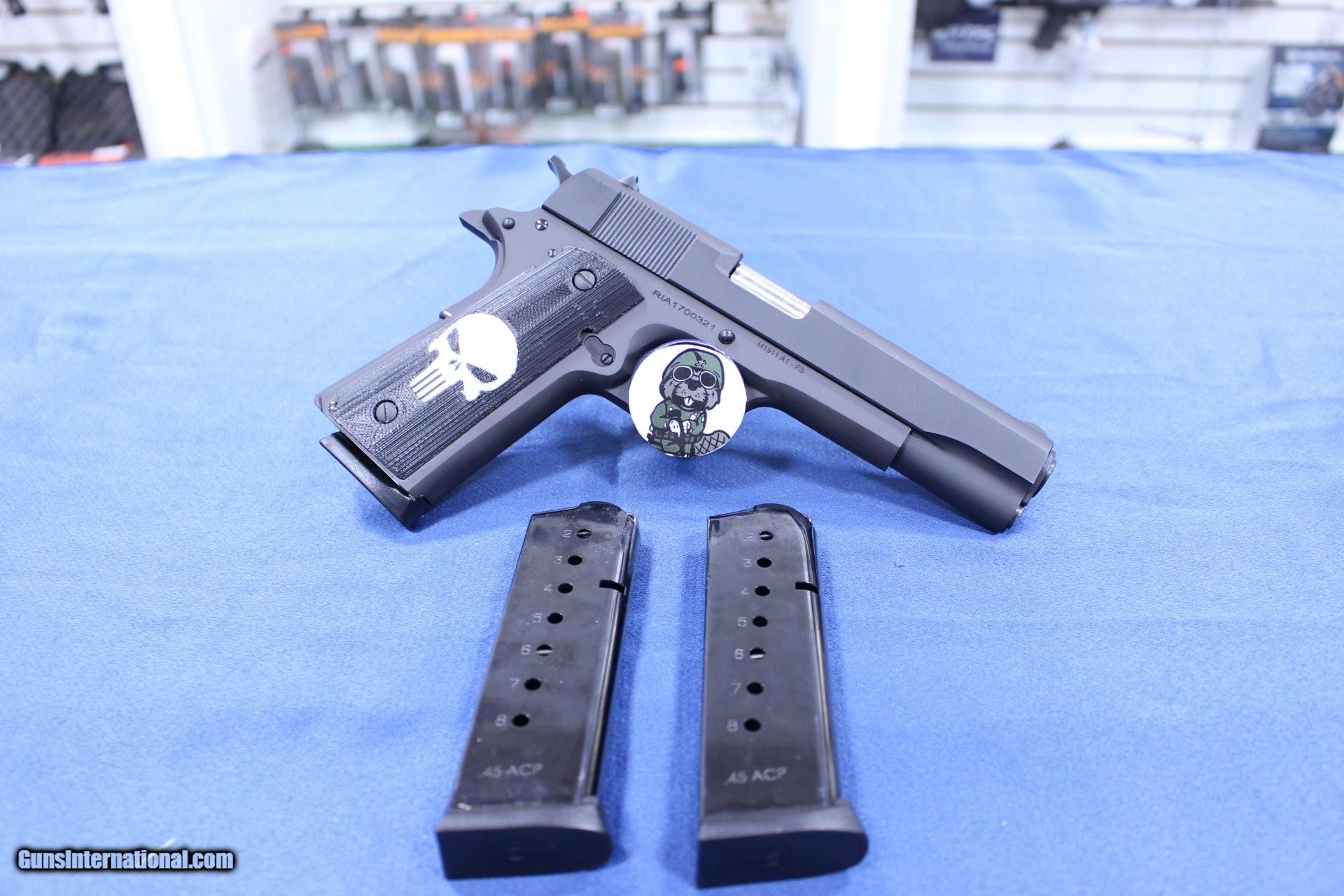 Description: Guns Listing ID: 586060 The M 1911 A1 standard is a great representation of the original US GI combat issue 1911 and is chambered in 45 ACP and built with our exacting engineering standards. Includes fixed, low profile sights and three 8-round magazines. A durable parkerized finish gives it a tough, smooth, non-reflective surface. Also includes Punisher grips. The 5\" barrel offers a balanced weight to assist with the accuracy and recoil that made the original 1911 design famous. True to all Rock Island 1911s, the GI Standard comes with a crisp factory 4- to 6-pound trigger to make it a great experience right out of the box. SOLD Manufacturer: ROCK ISLAND ARMORY Model: GI STANDARD FSHC MA COMP Caliber Info: .45 ACP Condition: Used - Non-Certified Barrels: 5" BARREL Action: SINGLE SHOT Weight: 2.8 |