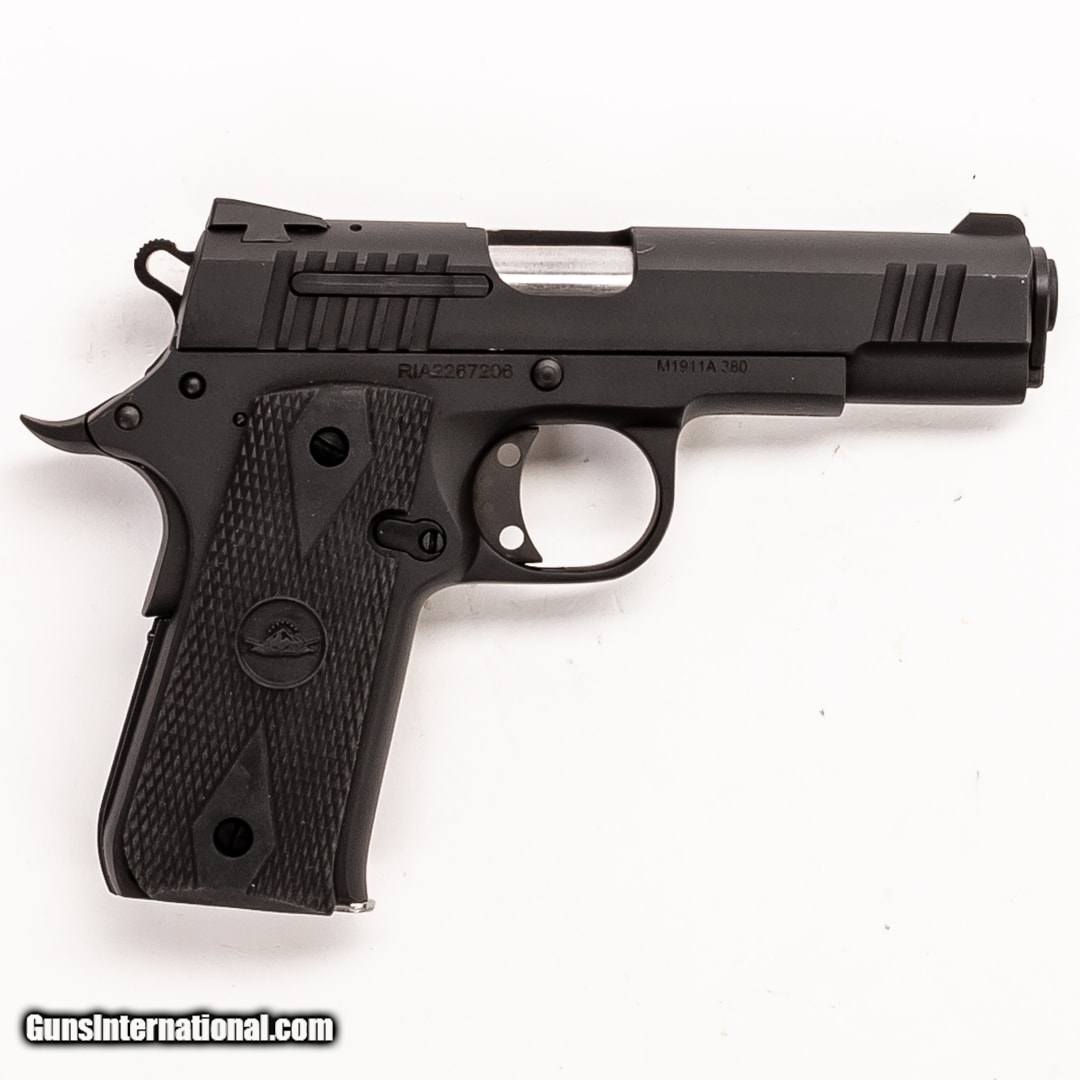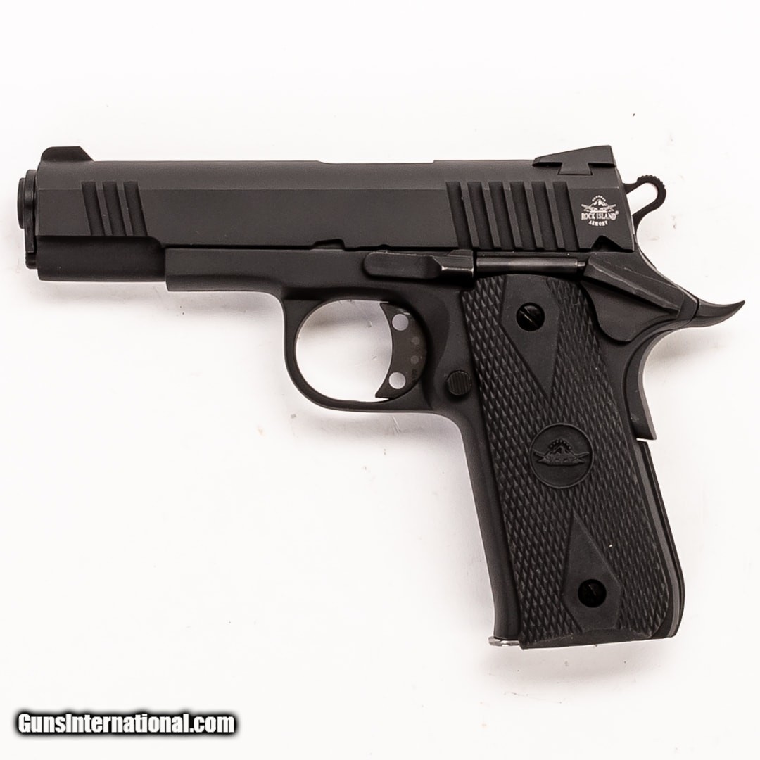 Description: Guns Listing ID: 350414 The Rock Island Armory Baby Rock is a compact 1911 chambered in .380 acp. It‚‚s a little over 6.5\" in total length with a slim frame, making this an outstanding concealed carry/self-defense sidearm with a classic look. Original case and manual included, along with one 7-round magazine SOLD Manufacturer: ROCK ISLAND ARMORY Model: M1911 380 Caliber Info: .380 ACP Condition: Used - Certified Barrels: 3.8 BARREL Finish: BLACK |