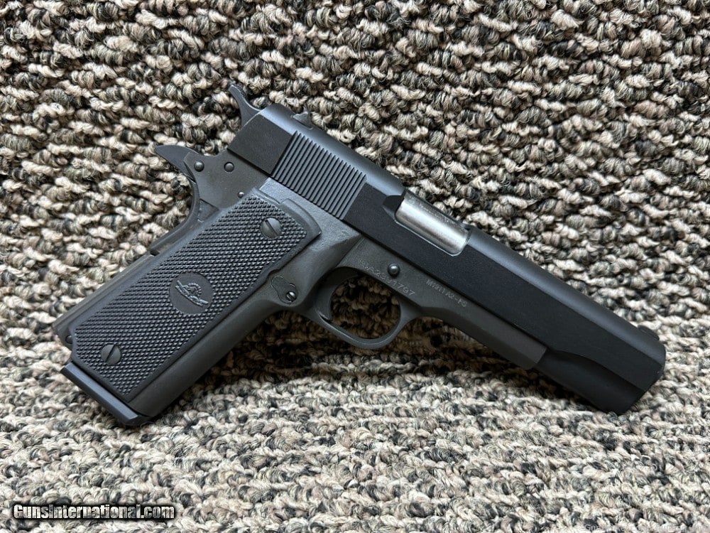 Description: Guns Listing ID: 1124721 This listing is for a USED Rock Island Armory M1911 A2 FS 5\" BBL Black Double Stack 10+1. This is a used gun, it has been fired and there will be residue present. This Rock Island Armory M1911 A2 FS is chambered 45ACP, and the barrel is 5 inches long. This handgun has fixed sights, rear slide serrations. This handgun comes with a hard case, one 10 round magazine, and the owner’s manual. There is a scratch on top of the slide near the rear sight, and there is some wear near the muzzle. The action appears to be in good condition. The bore appears to be in good condition. This would be a great handgun to add to your collection! SOLD Manufacturer: ROCK ISLAND ARMORY Model: M1911 Caliber Info: .45 ACP Condition: Used - Non-Certified Barrels: 5 BARREL Finish: BLACK |