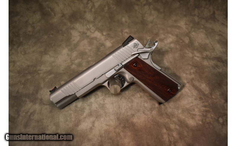 Description: This pistol is in great shape with some minor signs of use. The steel is all in great condition and the bore is nice and clean. The grip panels are also in great condition with some very minor signs of use. This pistol also features a red fiber optic front sight and a blacked out rear sight. The trigger and hammer are both polished as well. This gun comes with the factory case as well. 9mm Luger SOLD Chambers: (mm Luger Metal Condition: Good Wood Condition: Good Bore Condition: Clear & Bright Barrels: 5 inch Triggers: Single action Weight: 2 lbs 8 oz Sights: Iron Sights Item Location: Springfield, MO |
