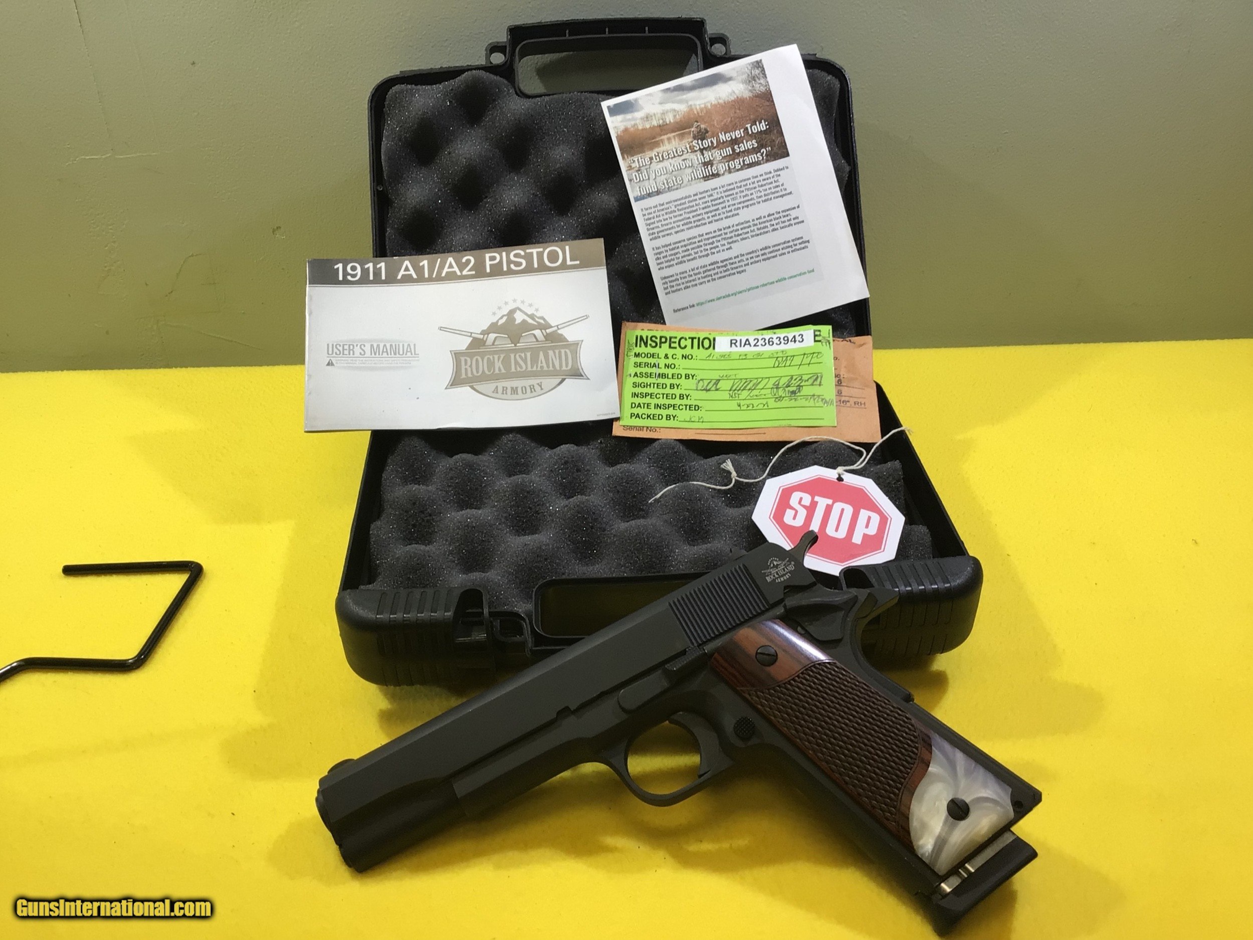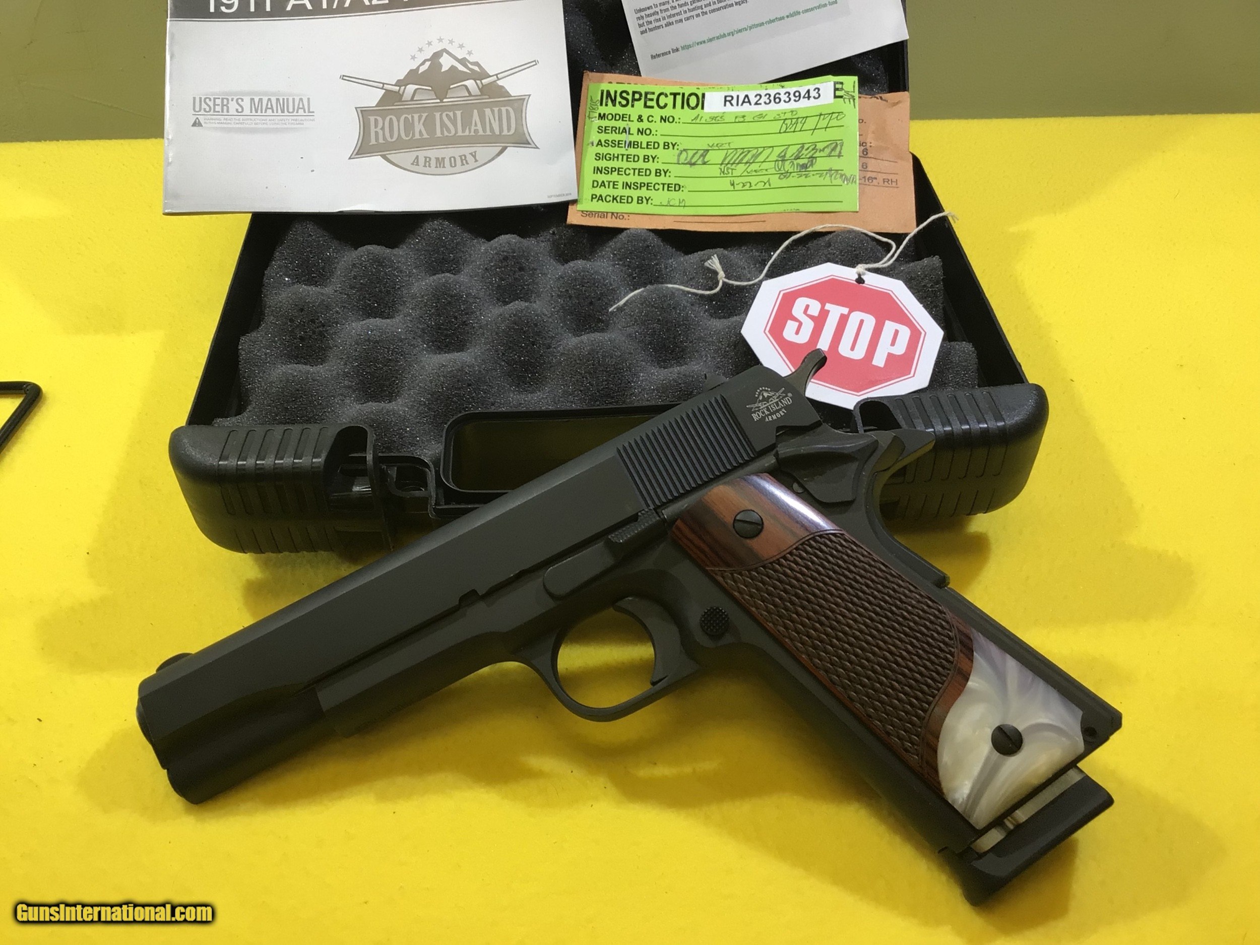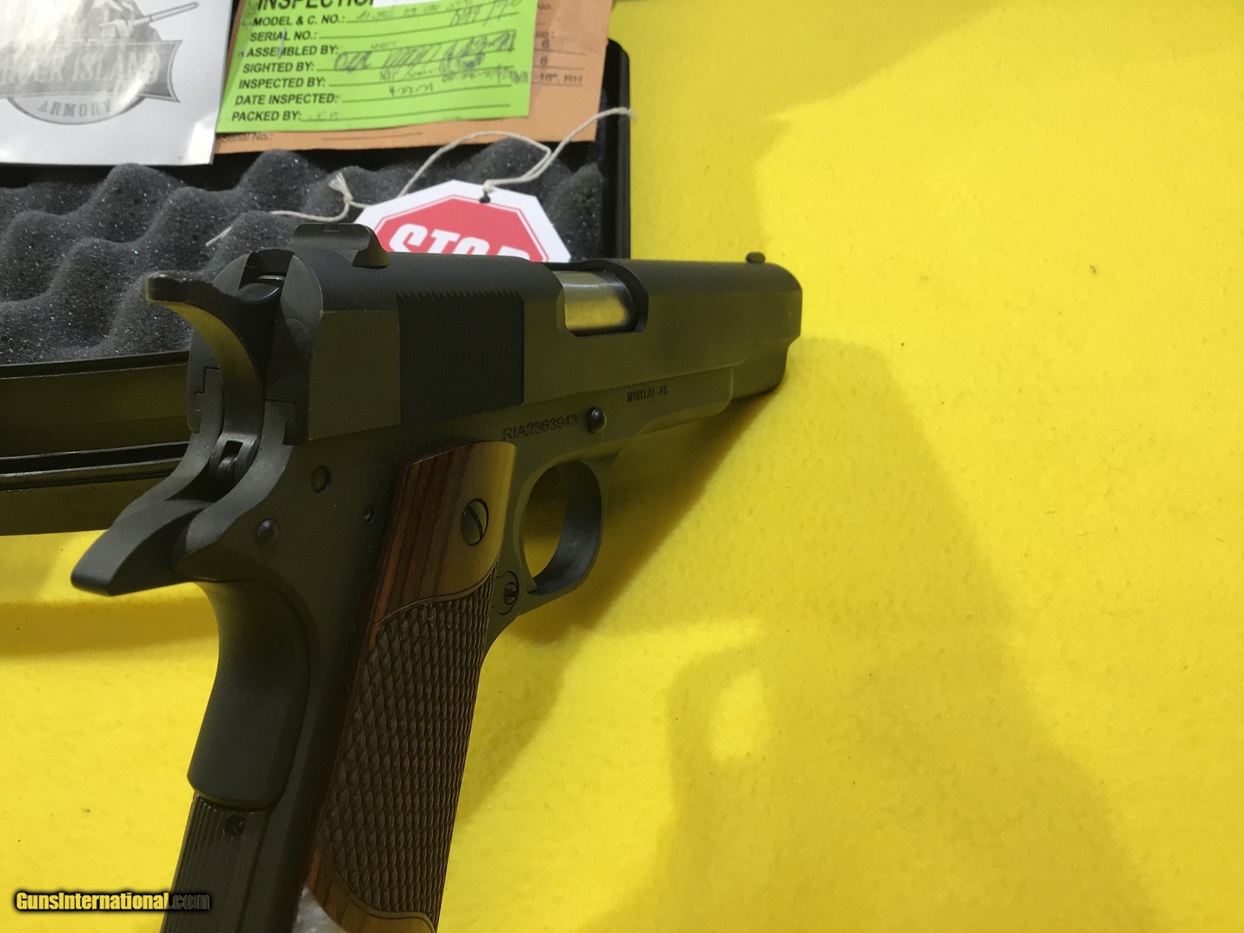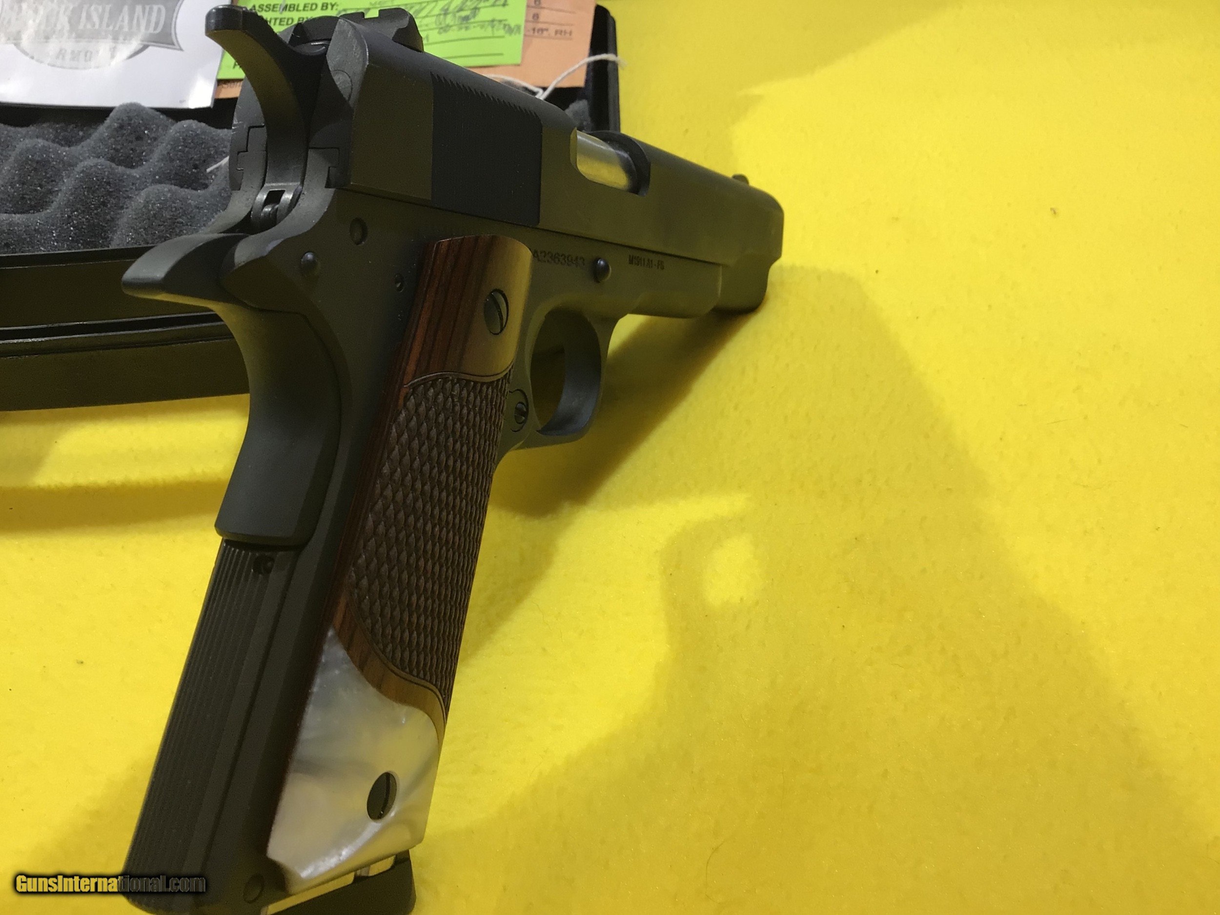 Description: ROCK ISLAND ARMORY M1911 A1 .38 SUPER PISTOL. GI STANDARD FS. INCLUDES BOX, DOCS, 1-10 ROUND MAG. THIS FIREARM IS IN EXCELLENT USED CONDITION. THE GUN LOOKS BRAND NEW. PREVIOUS OWNER ADDED CUSTOM GRIPS. SOLD Manufacturer: ROCK ISLAND ARMORY Model: M1911 A1 GI STANDARD FS Bore: Excellent Condition: EXCELLENT |