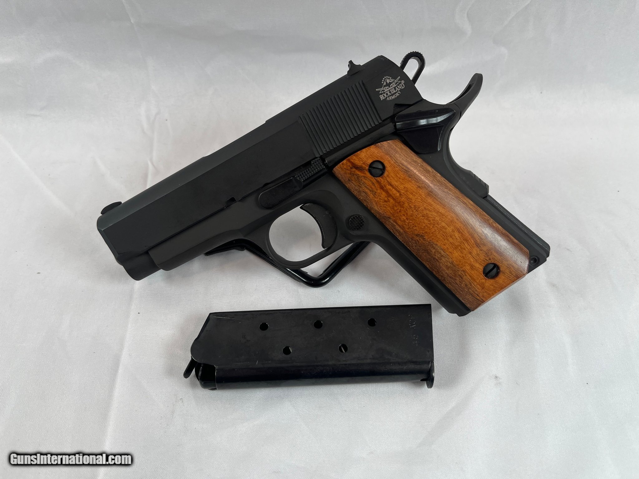 Description: Guns Listing ID: 551332 Rock Island Armory M1911 A1-CS – .45 ACP – Parkerized/Wood – Good Condition Description: Offered here is a Rock Island Armory M1911 A1-CS chambered in .45 ACP. This compact officer-size 1911 is designed for concealed carry and defensive use, while retaining the classic styling and robust construction of the iconic M1911 platform. It features a 3.5-inch barrel, a parkerized steel slide and frame, and smooth wood grips that provide a traditional look with a comfortable hold. The A1-CS utilizes a Series 70 firing system and includes a low-profile front sight with a snag-free rear sight for easy concealment. Whether you’re looking for a compact 1911 for concealed carry or a reliable defensive sidearm with traditional design, the Rock Island Armory M1911 A1-CS offers excellent craftsmanship and performance at an affordable price. Features: 3.5\" barrel Parkerized steel slide and frame Low-profile front and rear sights Beavertail grip safety Smooth wood grips Includes: (1) 7-round magazine SOLD Manufacturer: ROCK ISLAND ARMORY Model: M1911 A1-CS Caliber Info: .45 ACP Condition: Used - Non-Certified Barrels: 3.5 BARREL Action: SEMI AUTOMATIC |