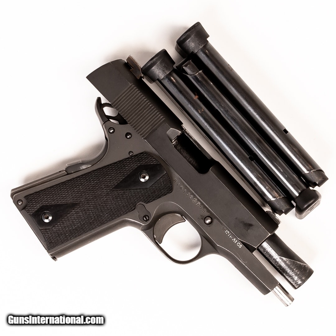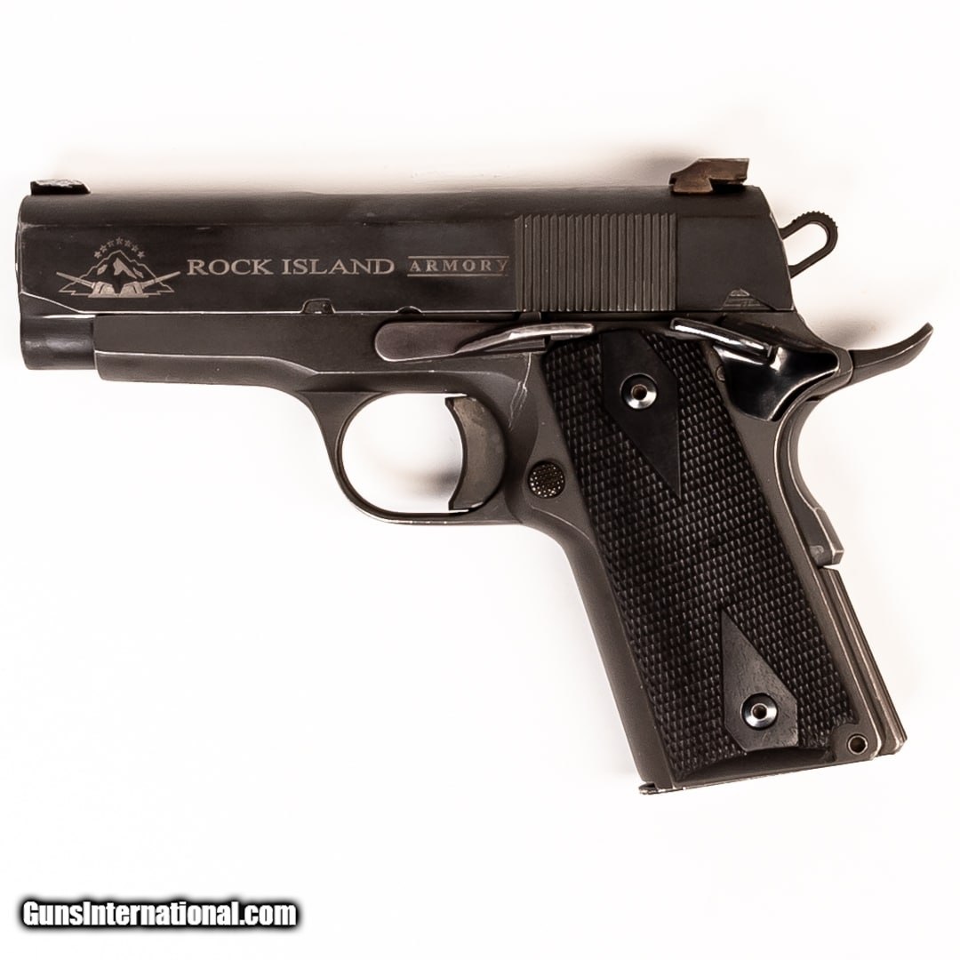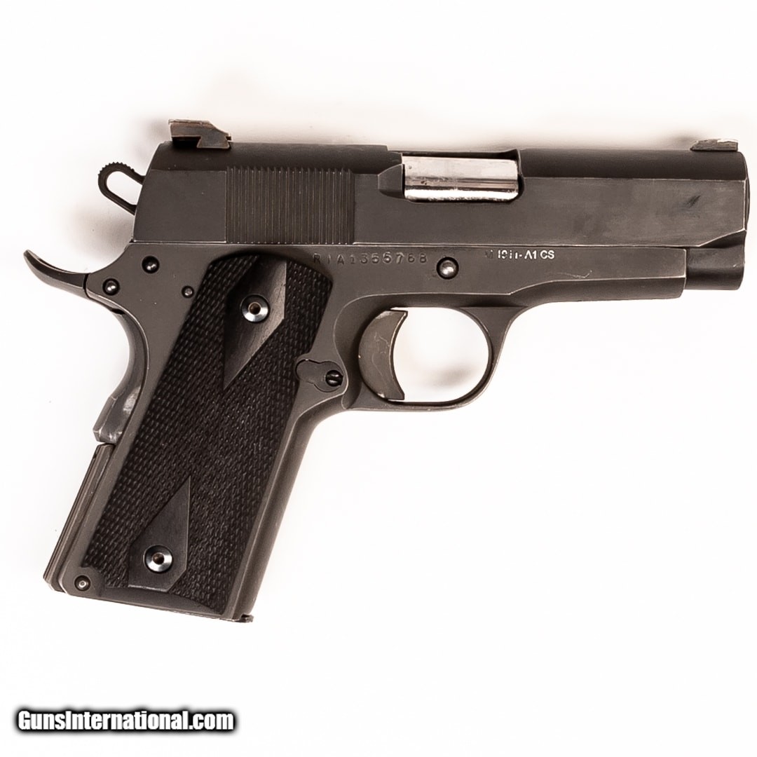 Description: Guns Listing ID: 463395 The Rock Island Armory M1911-A1 CS is a semi-automatic handgun. This configuration is referred to as the Officer‚‚s Model and features a shortened 3.5\" barrel. This handgun includes one 8-ound magazine, two 7-round magazines, and one 6-round magazine SOLD Manufacturer: ROCK ISLAND ARMORY Model: M1911-A1 CS Caliber Info: .45 ACP Condition: Used - Certified Barrels: 3.5 BARREL Finish: BLACK |