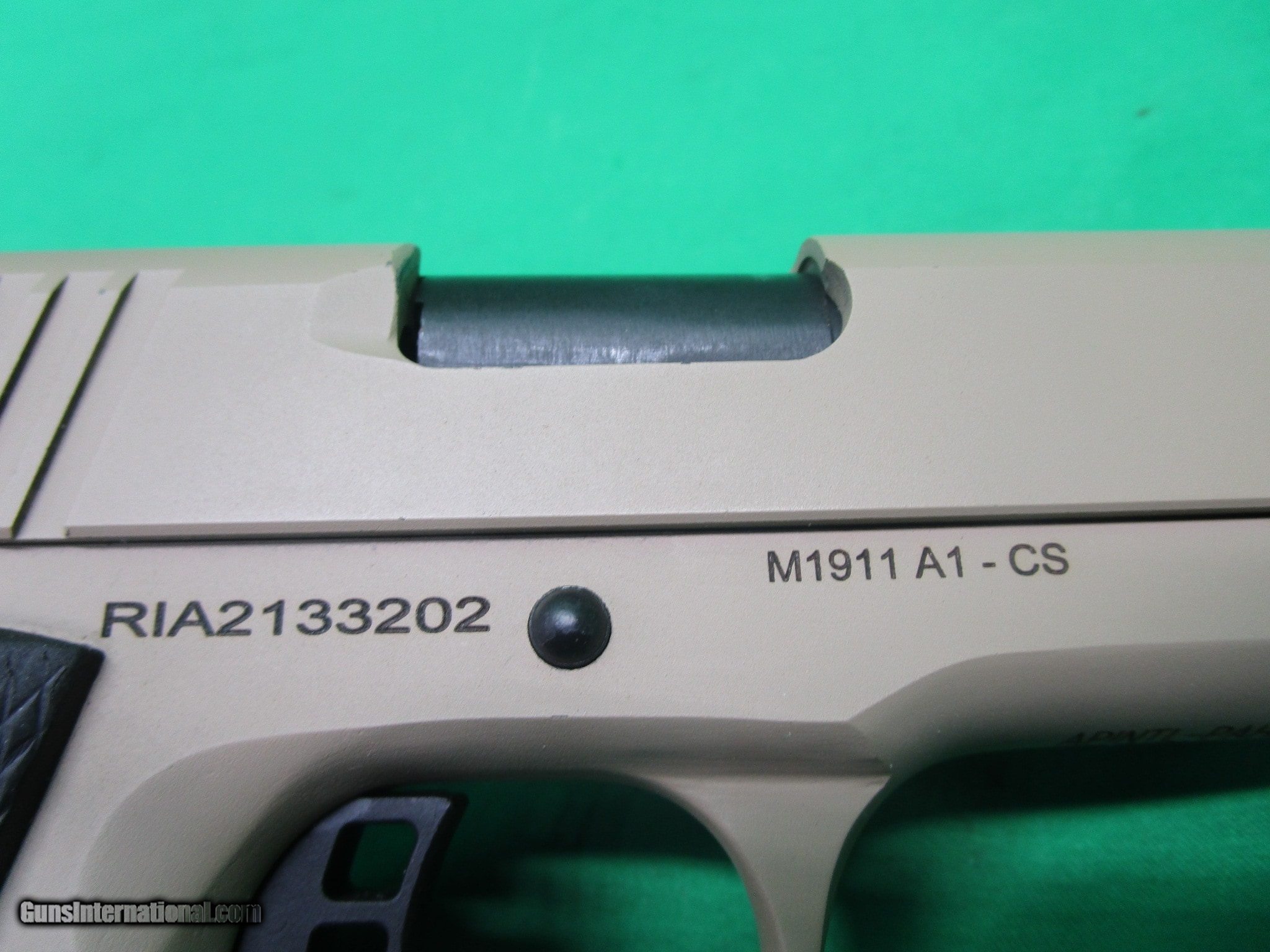 Description: Guns Listing ID: 766150 We have a used Rock Island Armory M1911 A1 CS semi-automatic pistol for sale. This is chambered in 9mm with a 3.25\" barrel. It comes as shown in pictures with one magazine and the factory case. This is in Very Good Used Condition. Overall we would grade at approx 98%. Check out the pictures and feel free to call or email with any questions. SOLD Manufacturer: ROCK ISLAND ARMORY Model: M1911 A1 CS Caliber Info: 9MM Condition: Used - Non-Certified Barrels: 3.25 BARREL Finish: FDE |