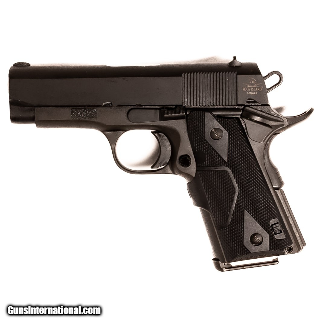 Description: Guns Listing ID: 772815 For sale is a Rock Island Armory M1911 A1 CS. It would make a fantastic choice for personal protection. This model is equipped with a safety and Crimson Trace laser grips. Purchase includes the original case, manual, and one 7-round magazine. Get the best bang for your buck when you get a Certified Used Firearm . When you see the Certified Used stamp on any of our firearms, you can be confident that you’re getting exactly what you want – a gun only in very good to excellent condition and held to the highest quality standard. All Certified Used Guns come with a ‘no questions asked’ return policy . PLUS, ALL CERTIFIED USED GUNS SHIP FREE! SOLD Manufacturer: ROCK ISLAND ARMORY Model: M1911 A1-CS Caliber Info: .45 ACP Condition: Used - Certified Barrels: 3.6 BARREL Finish: BLACK |