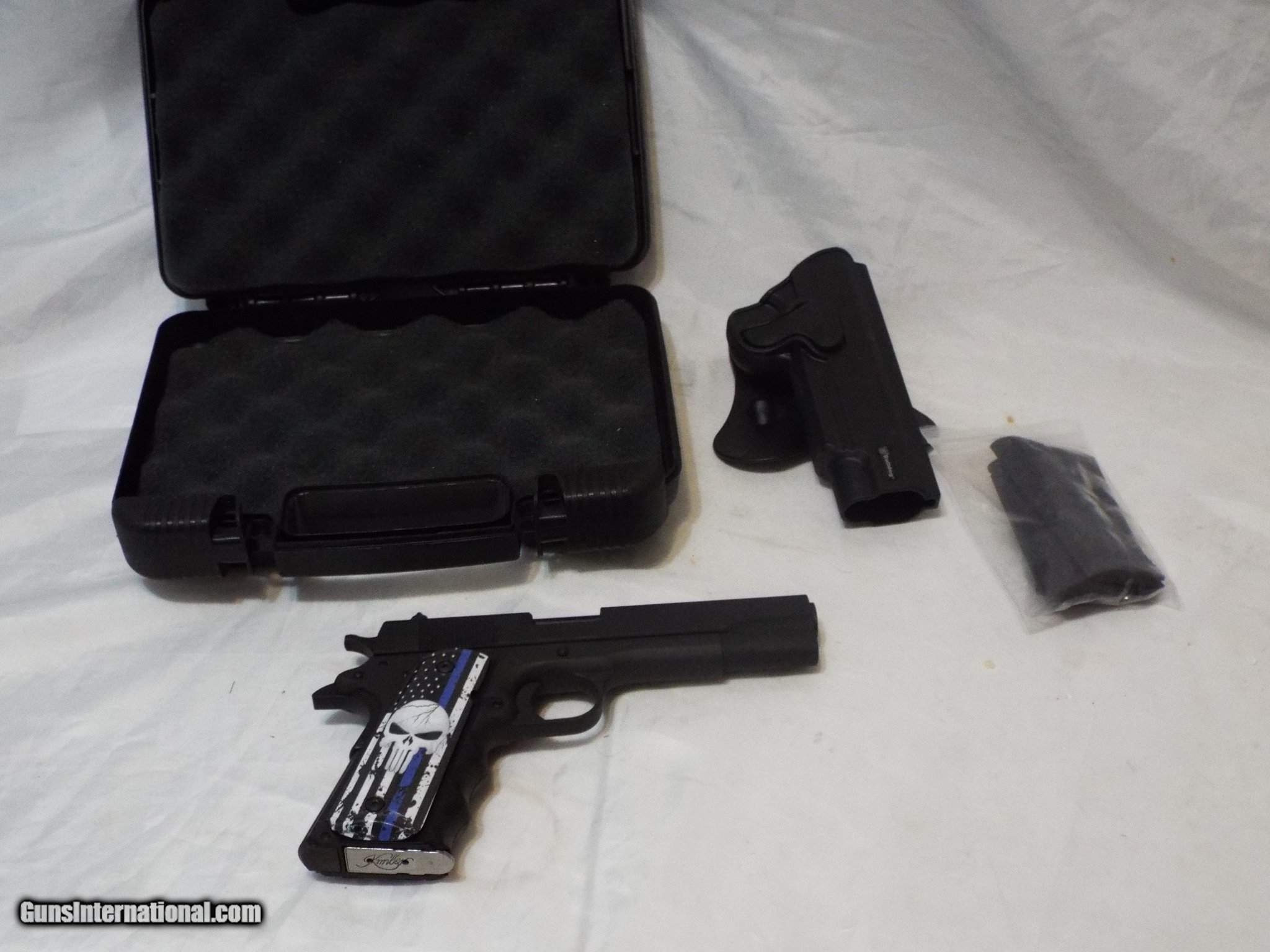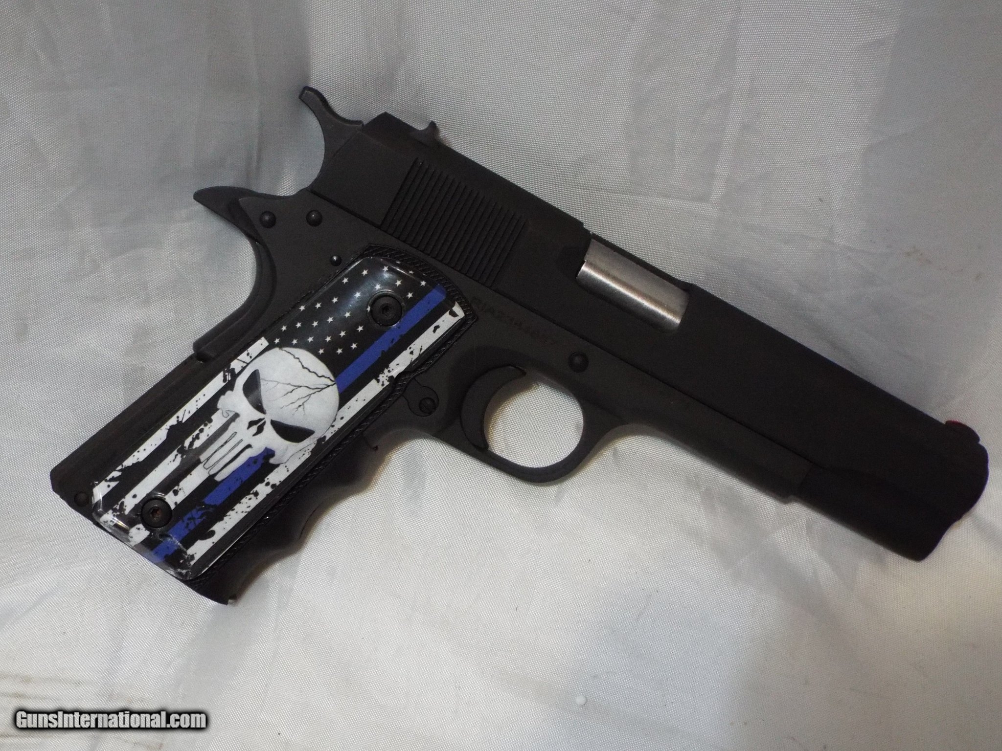 Description: Guns Listing ID: 466369 Rock Island M1911-A1 GI Standard 10mm Pistol 5\" 8+1 51508 Upgraded Kimber 1911 Magazine Punisher Grips Original Grips in Case Original Case Bulldog Paddle Holster _____________________ The M-1911 GI standard is great representation of the original US GI combat issue 1911 and is chambered in 10mm and built with our exacting engineering standards. Fixed, Low Profile Sights and traditional smooth slim design are perfect for quick pull holster use. Finished with a tough parkerized matte coating and comes with a checkered rubber grips. The 5\" barrel offers a balanced weight to assist with the accuracy and recoil that made the original 1911 design famous. True to all Rock Island 1911s, the GI standard comes with a crisp factory 4- to 6-pound trigger, making it a great experience right out of the box. SOLD Manufacturer: ROCK ISLAND ARMORY Model: M1911 A1-FS Condition: Used - Non-Certified Barrels: 5 Gauge Info: 10MM Finish: black |