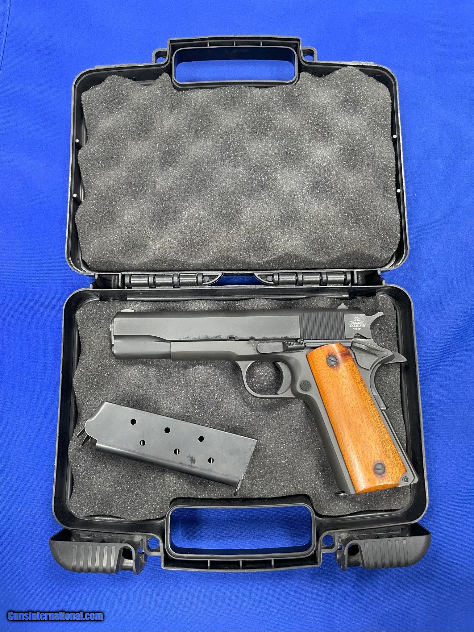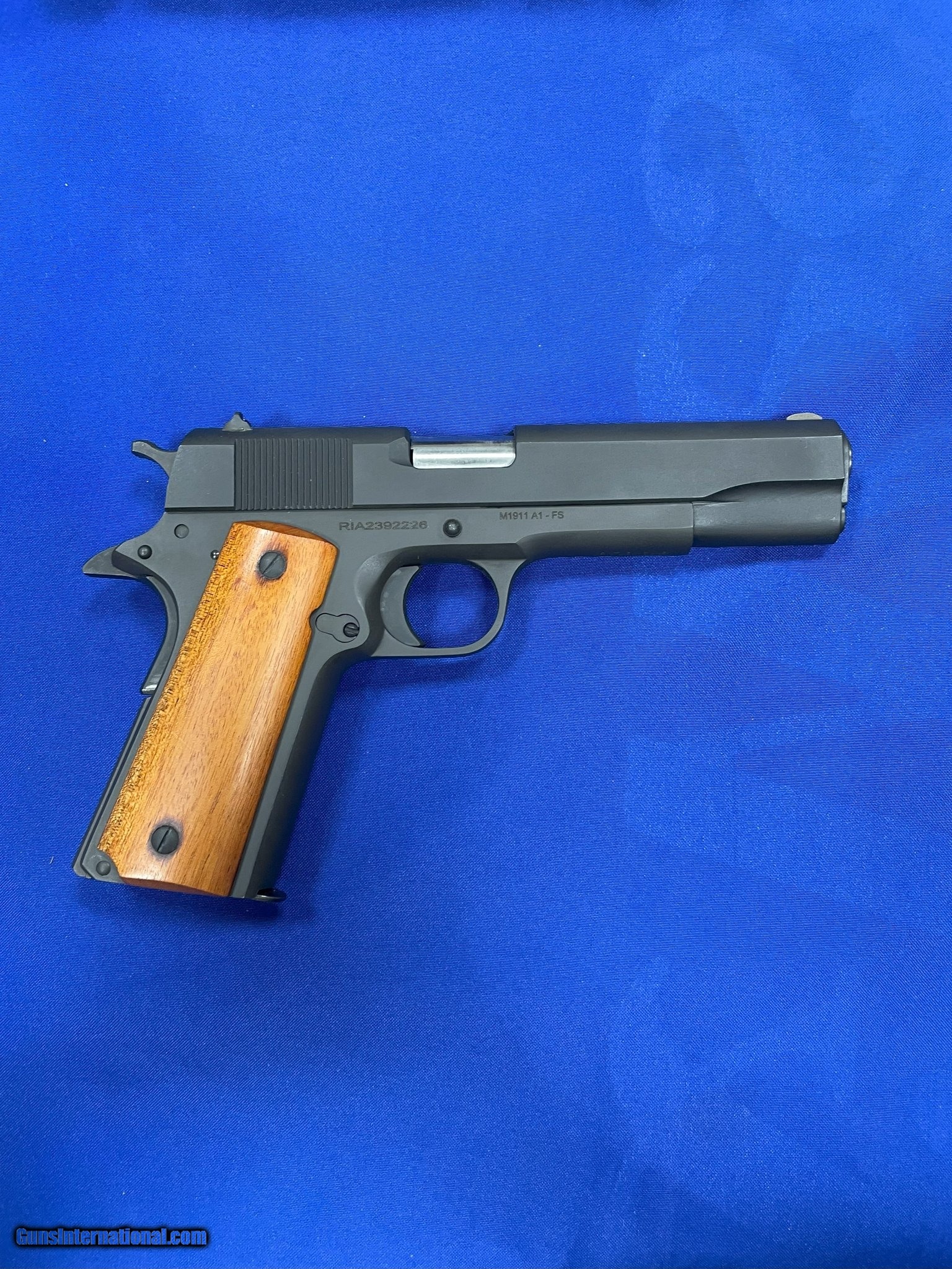 Description: Guns Listing ID: 482795 Comes with factory case and two magazines. SOLD Manufacturer: ROCK ISLAND ARMORY Model: M1911 A1-FS Caliber Info: .38 SUPER Condition: Used - Non-Certified Barrels: 5 BARREL Finish: black parkerized |