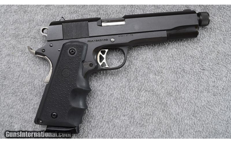 Description: This Rock Island M1911 A1-FS shows some light use marks but remains in very good overall condition. Gun has skeletonized trigger and hammer with a threaded barrel. Complete with case! .45 Auto SOLD Metal Condition: Very Good Bore Condition: Very Good Barrels: 5" - Threaded with Cap Triggers: Factory - Skeletonized Butt Pad: Textured Black Hogue Grips Weight: 40 Oz. Sights: Blade Front - Fixed Square Notch Rear Item Location: Wheeling |