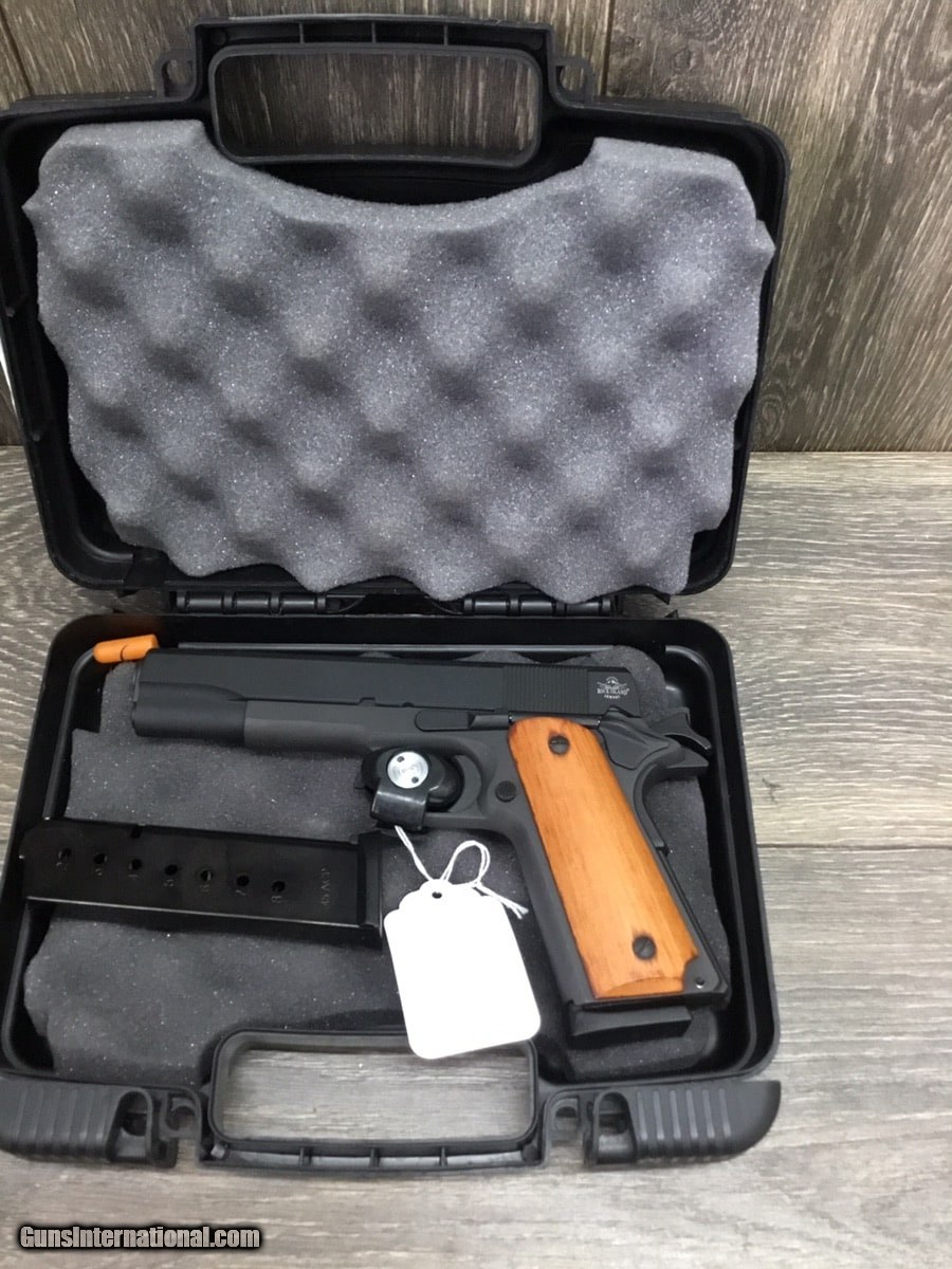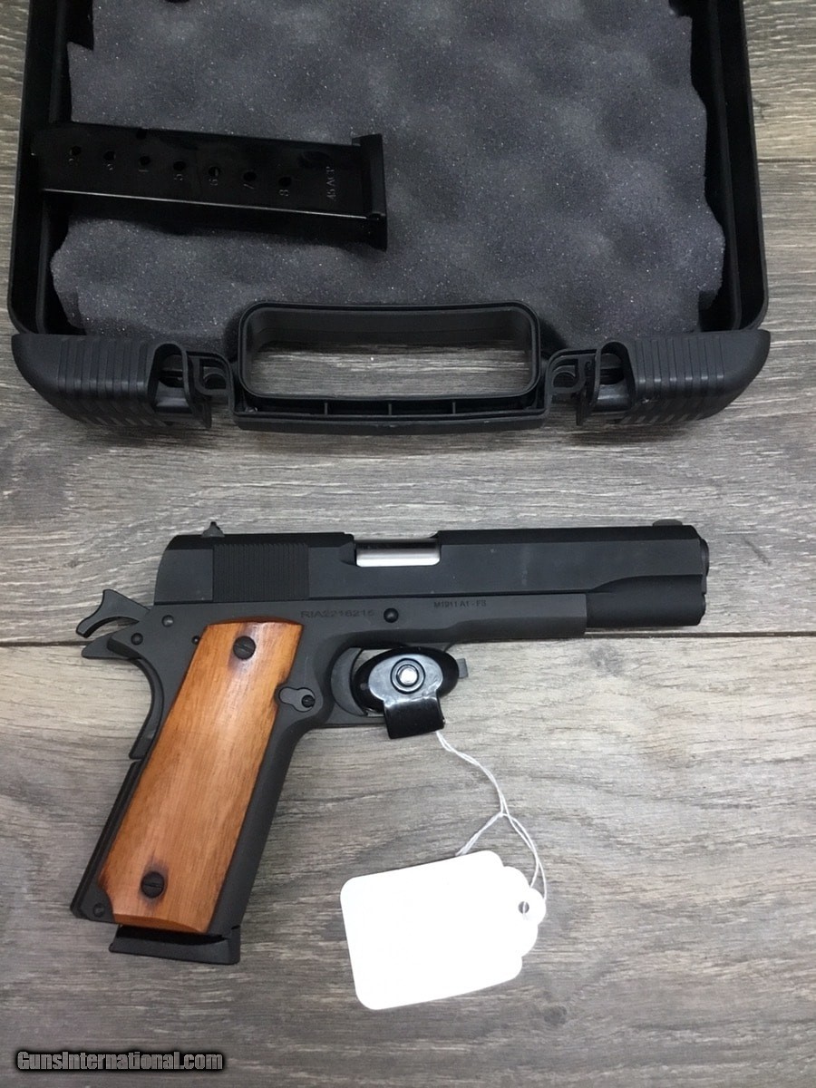 Description: Guns Listing ID: 606688 nice rock island 1911 with hard case and two mags (nss) SOLD Manufacturer: ROCK ISLAND ARMORY Model: M1911 A1 FS Caliber Info: .45 ACP Condition: Used - Non-Certified Barrels: 5 BARREL Finish: BLACK /W WOOD STOCK |