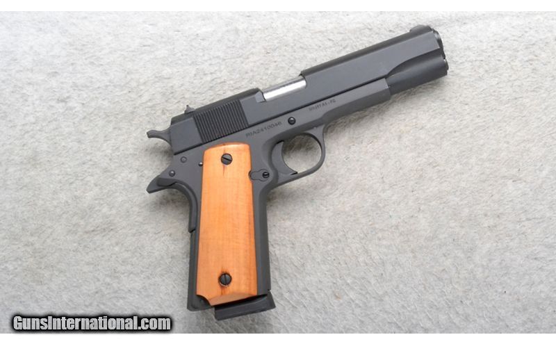 Description: This Rock Island Armory Model M1911 A1-FS is a right hand semi-automatic pistol in.45 ACP Cal. It has a 5 inch barrel with a rear serrated slide. A blade front sight and notch rear sight. The grip panels are a smooth hardwood. .45 ACP SOLD Chambers: 8 round magazine. Metal Condition: Good. Some minor surface scuffs. Wood Condition: Very Good. Bore Condition: Very Good. Barrels: 5 inch barrel with a rear serrated slide. Weight: 40 Oz. Sights: Blade front. Notch rear. Item Location: Richfield, WI |