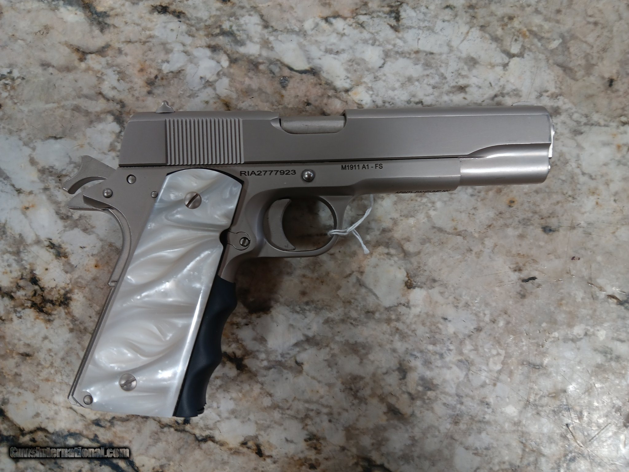 Description: Guns Listing ID: 1363965 rock island m1911 a1-fs stainless see photos SOLD Manufacturer: ROCK ISLAND ARMORY Model: M1911 A1-FS Caliber Info: .45 ACP Condition: Used - Non-Certified Barrels: 5 BARREL Finish: STAINLESS |