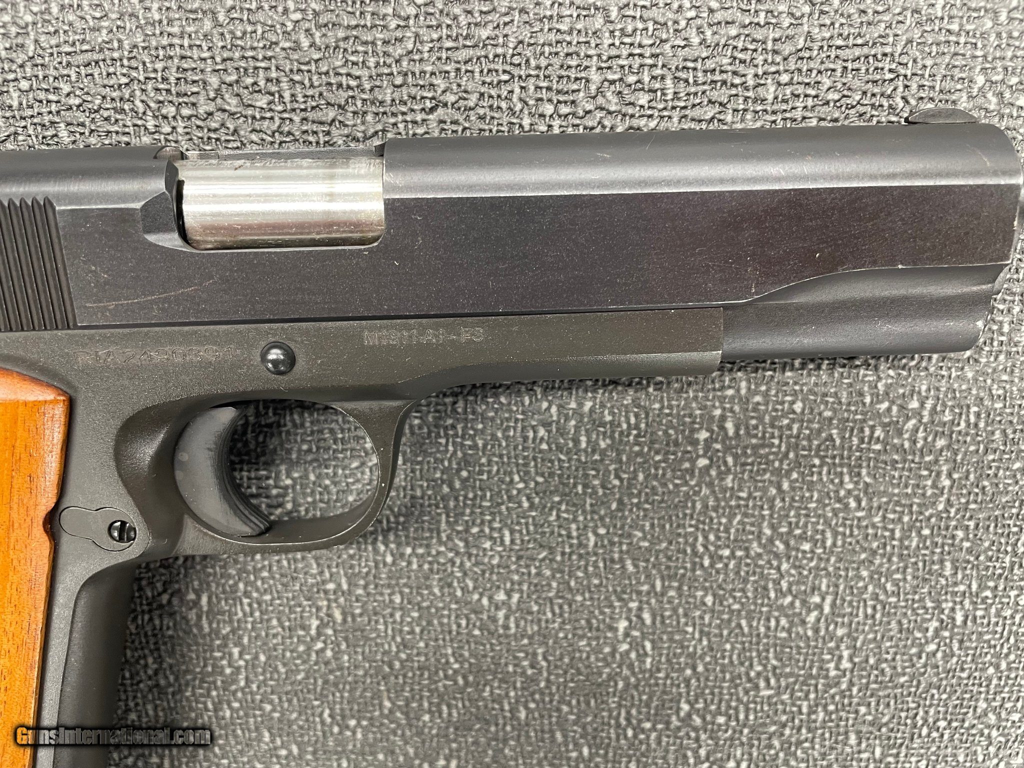 Description: Guns Listing ID: 1377117 Used Rock Island M1911 A1-FS .45 ACP it does have some scratches, scuffs and discoloration on it. SOLD Manufacturer: ROCK ISLAND ARMORY Model: M1911 A1-FS Caliber Info: .45 ACP Condition: Used - Non-Certified Barrels: 5 BARREL Finish: BLUED |