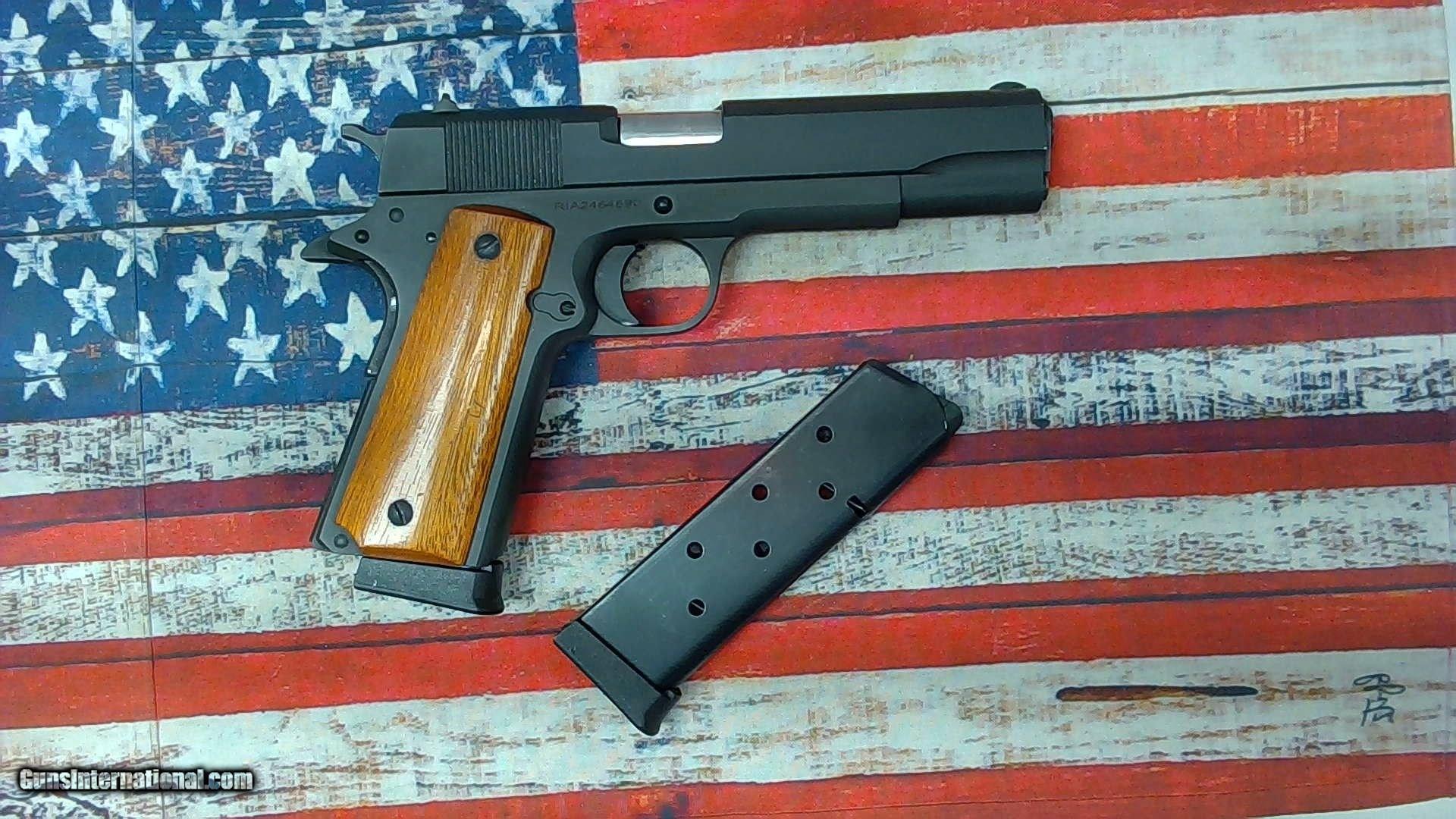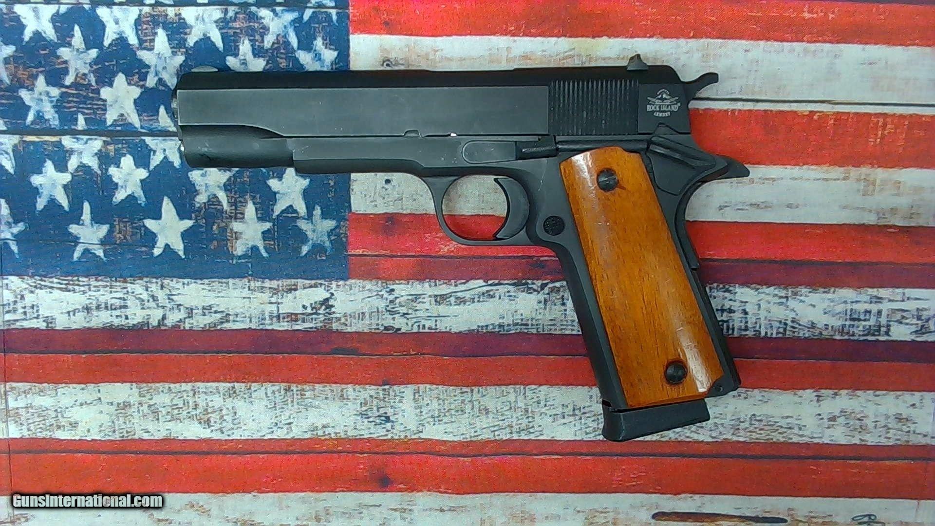 Description: Guns Listing ID: 471964 Pre-owned Rock Island 1911 chambered in .45 acp. The 1911 is a classic style and a must have for any firearm enthusiast. This pistol is in good condition, it does have signs of holster wear on the slide and a few scratches on the frame. Includes two 8 round magazines. The M 1911 GI standard is a great representation of the original US GI combat issue 1911 and is chambered in .45 ACP and built with precise engineering standards. Features a rugged parkerized finish, a 5\" barrel and two 8 round magazines. These photos represent the exact firearm for sale. As with many used firearms, this item may contain scratches and/or signs of wear. This is not always the case but should not be unexpected. No original box or other accessories. SOLD Manufacturer: ROCK ISLAND ARMORY Model: M1911 A1-FS Condition: Used - Non-Certified Barrels: 5 Gauge Info: .45 ACP Finish: black |