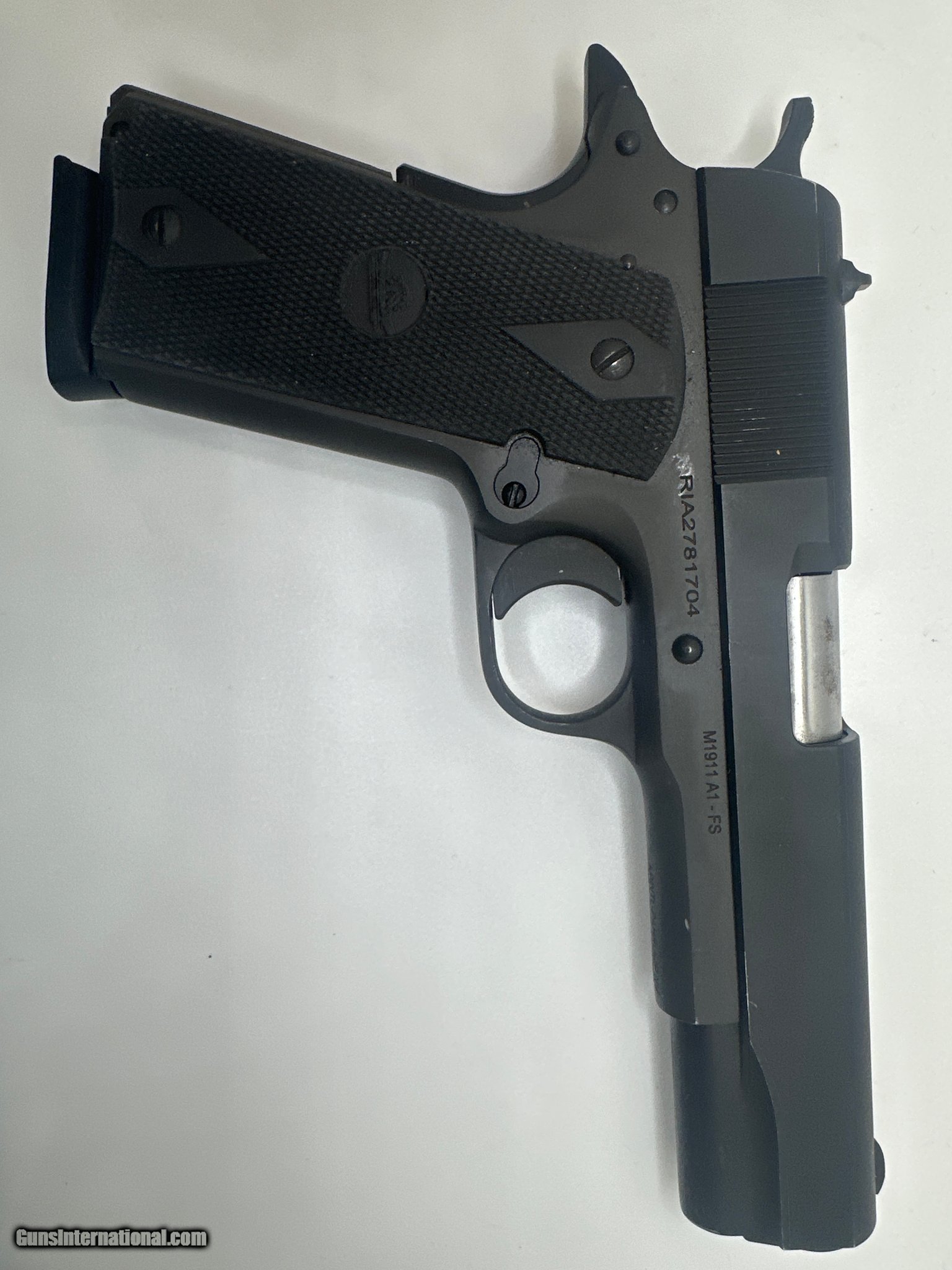 Description: Guns Listing ID: 489764 No case One 8rd magazine SOLD Manufacturer: ROCK ISLAND ARMORY Model: M1911 A1-FS Condition: Used - Non-Certified Barrels: 5 Gauge Info: .45 ACP Finish: black |