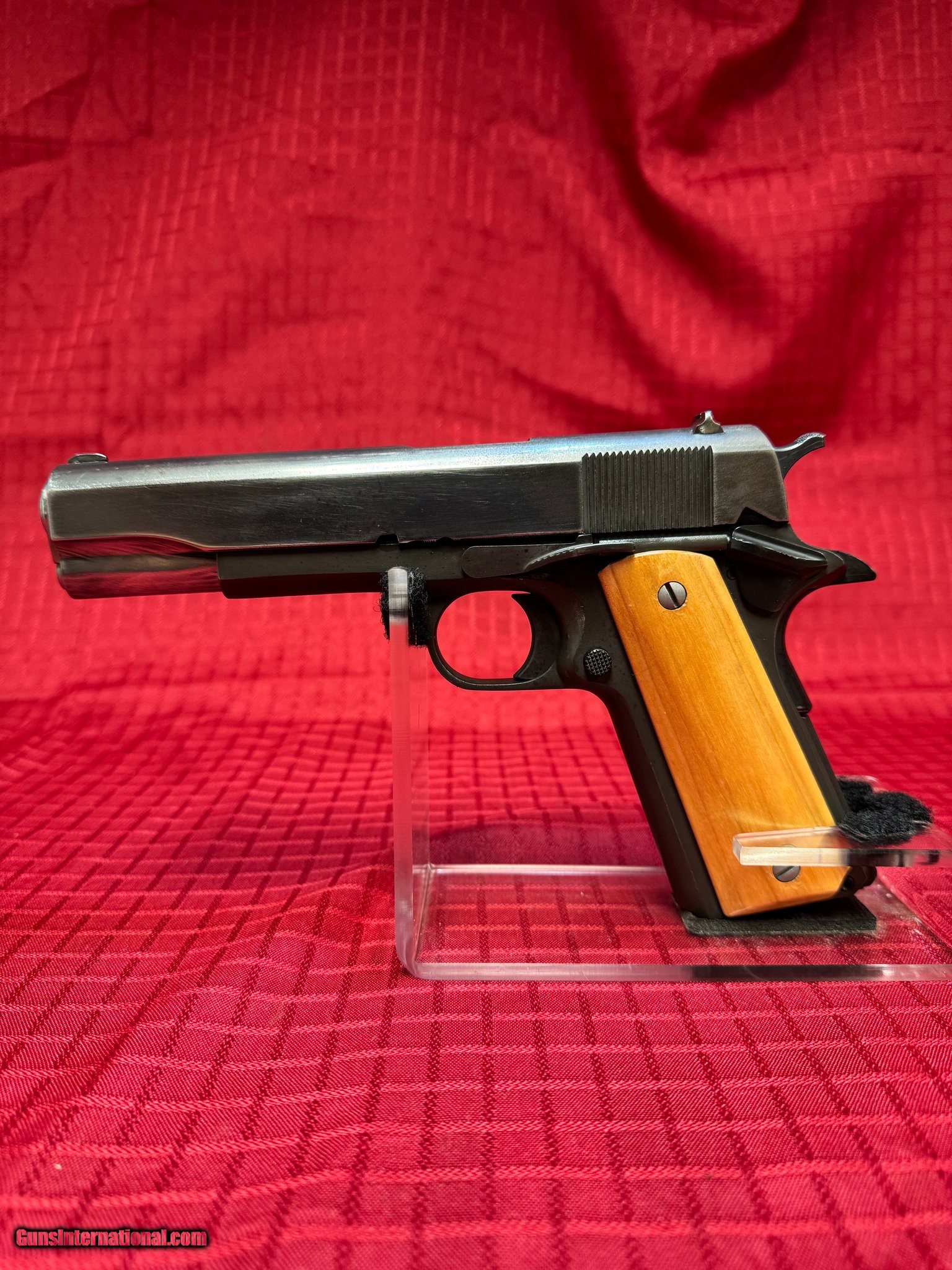 Description: Guns Listing ID: 562481 ROCK ISLAND ARMORY M1911 A1-FS - .45 ACP - TWO MAGAZINES - 6 ROUNDS - 5 \" BARREL The slide appears to have an antique finish, with hints of blueing, looks great! For the money, I think this gun is an excellent value. The Rock Island Armory M1911A1 would be an excellent “first gun" for someone who wants to try out the M1911 platform without over-committing resources. Based on my testing so far, it has the reliability and accuracy to serve in the personal defense role. It might be able to go places with you where you wouldn’t want to take the “safe queens." Manufacturer: ROCK ISLAND ARMORY Model: M1911 A1-FS Caliber: .45 ACP Magazines: TWO - 6RDS Sights: FIXED Weight: 37 oz Overall Length: 8.75\" Barrel Length: 5\" SERIAL NUMBER: RIA2247680 SKU NUMBER: DJ1032693 SOLD Manufacturer: ROCK ISLAND ARMORY Model: M1911 A1-FS Caliber Info: .45 ACP Condition: Used - Non-Certified Barrels: 5" BARREL Action: SEMI AUTOMATIC Finish: black and wood |