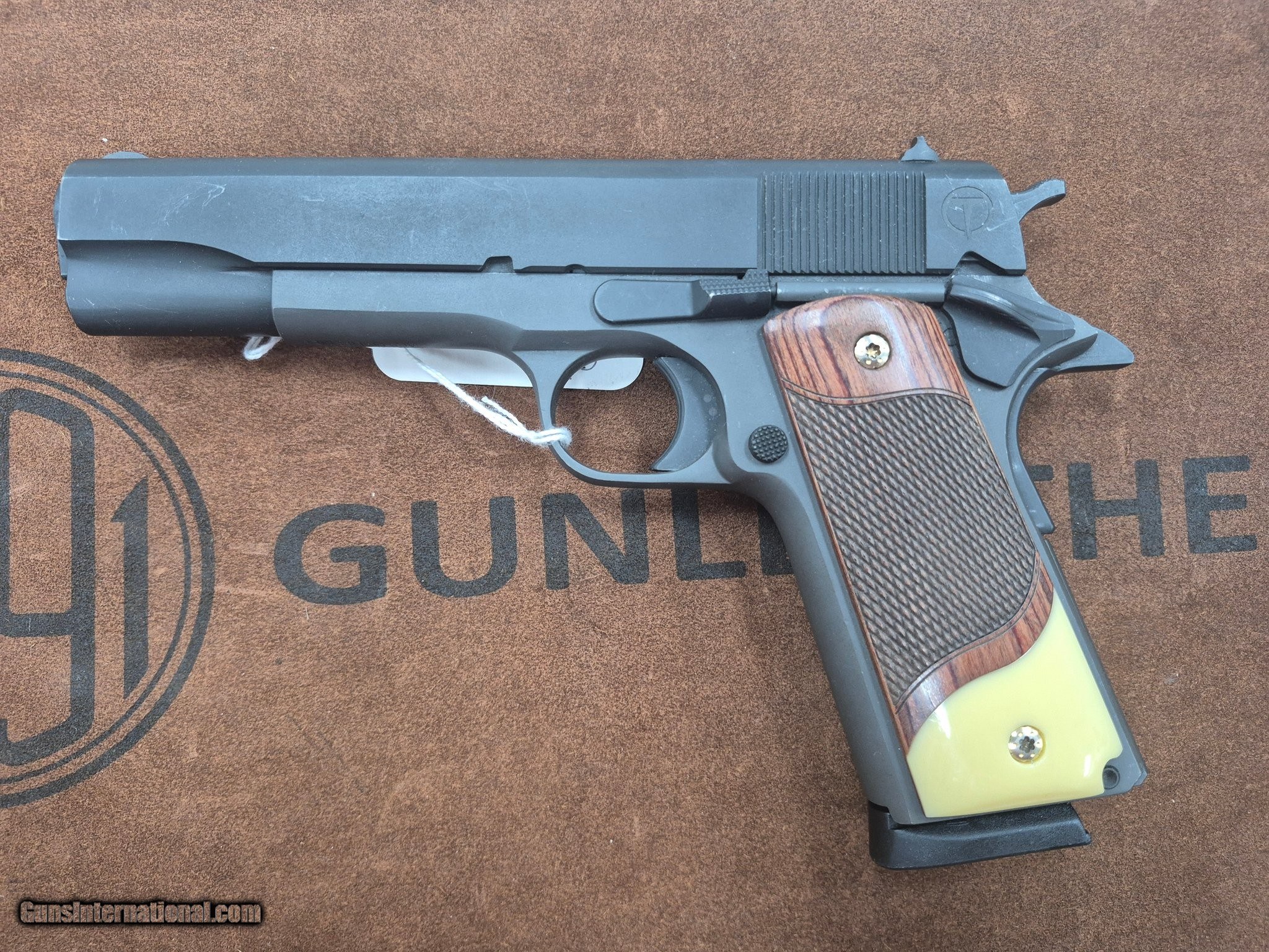 Description: Guns Listing ID: 577820 Rock Island 1911 with one magazine no box. Manufacturer: ROCK ISLAND ARMORY Model: M1911 A1-FS Caliber Info: .45 ACP Condition: Used - Non-Certified Barrels: 5" BARREL Action: SEMI AUTOMATIC Finish: black Price: $569.99 Contact Seller |