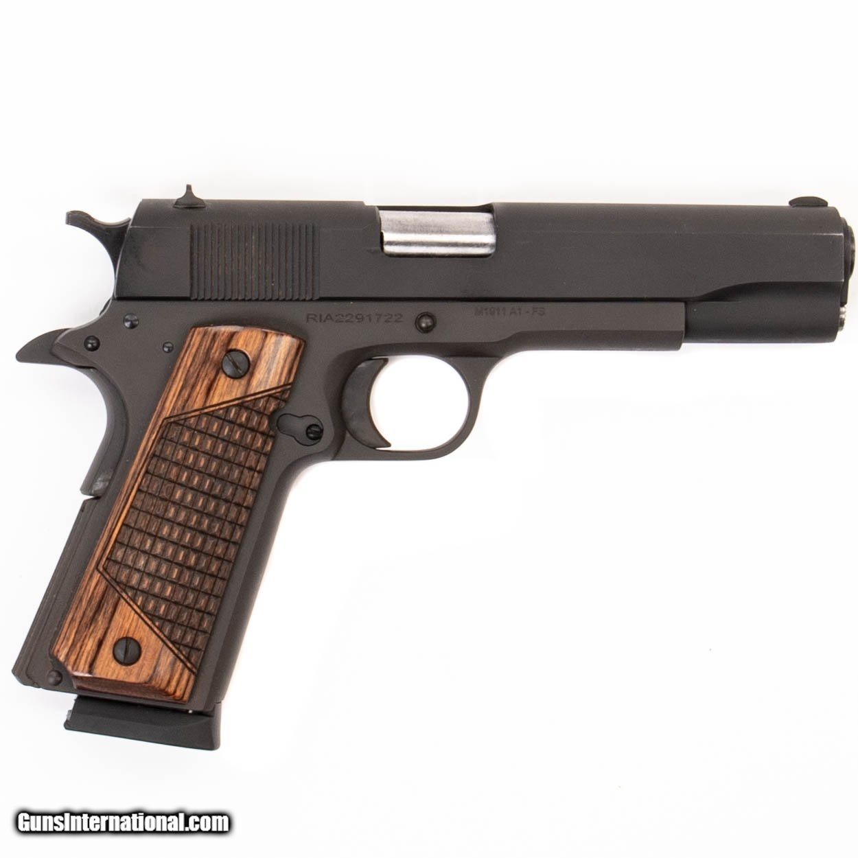 Description: Guns Listing ID: 492813 This Rock Island Armory 1911 A1 FS features wood grips and an optional compensator. Purchase includes the original case, three 10-round magazines, and plastic grips. Get the best bang for your buck when you get a Certified Used Firearm . When you see the Certified Used stamp on any of our firearms, you can be confident that you‚‚re getting exactly what you want – a gun only in very good to excellent condition and held to the highest quality standard. All Certified Used Guns come with a ‚‚no questions asked‚‚ return policy . PLUS, ALL CERTIFIED USED GUNS SHIP FR SOLD Manufacturer: ROCK ISLAND ARMORY Model: M1911 A1-FS Caliber Info: 9MM LUGER (9x19 PARA) Condition: Used - Non-Certified Barrels: 5.00 BARREL Action: SEMI AUTOMATIC Finish: black Weight: 2.6 |