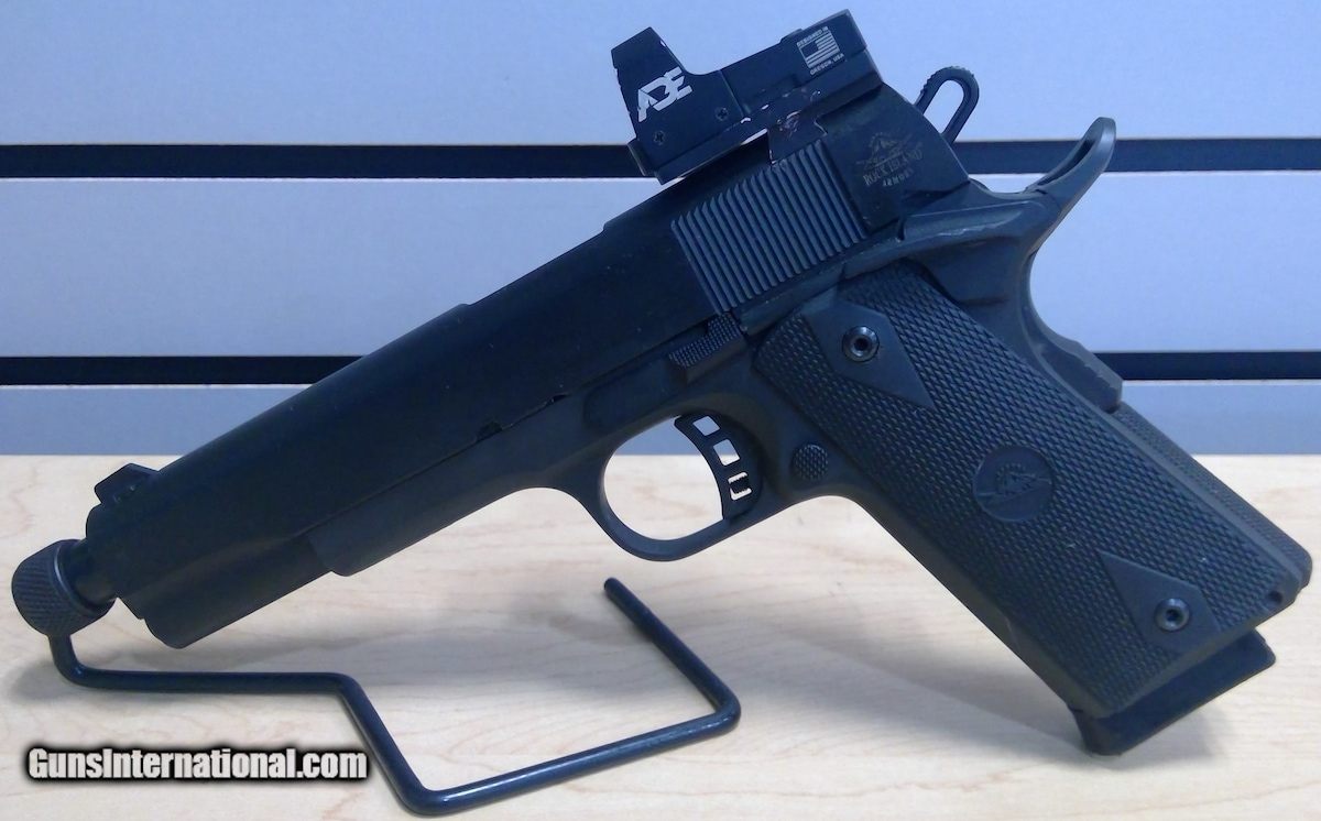 Description: Guns Listing ID: 503676 The M1911 GI standard is a great representation of the original US GI combat issue 1911 chambered in 45 ACP and is built in Rock Island’s top quality production and engineering standards. Fixed low profile sights and traditional smooth slim design are perfect for quick pull holster use. A durable parkerized finish provides it a tough and smooth non reflective surface. Smooth rubber grips offering a comfort grip that can be appreciated by any in both feel and design. The 5” threaded barrel offers a balanced weight assisting with the accuracy and recoil that made the original 1911 design famous. True to all Rock Island 1911’s, the GI Standard comes with a crisp factory 4 to 6 pound trigger which makes this fine pistol a great experience right out of the box. This firearm is equipped with an ADE Advanced Optics RD3-006B Python Green Dot Micro Mini Reflex Sight. SOLD Manufacturer: ROCK ISLAND ARMORY Model: M1911 A1 FS Caliber Info: .45 ACP Condition: Used - Non-Certified Barrels: 5 BARREL Finish: BLACK |