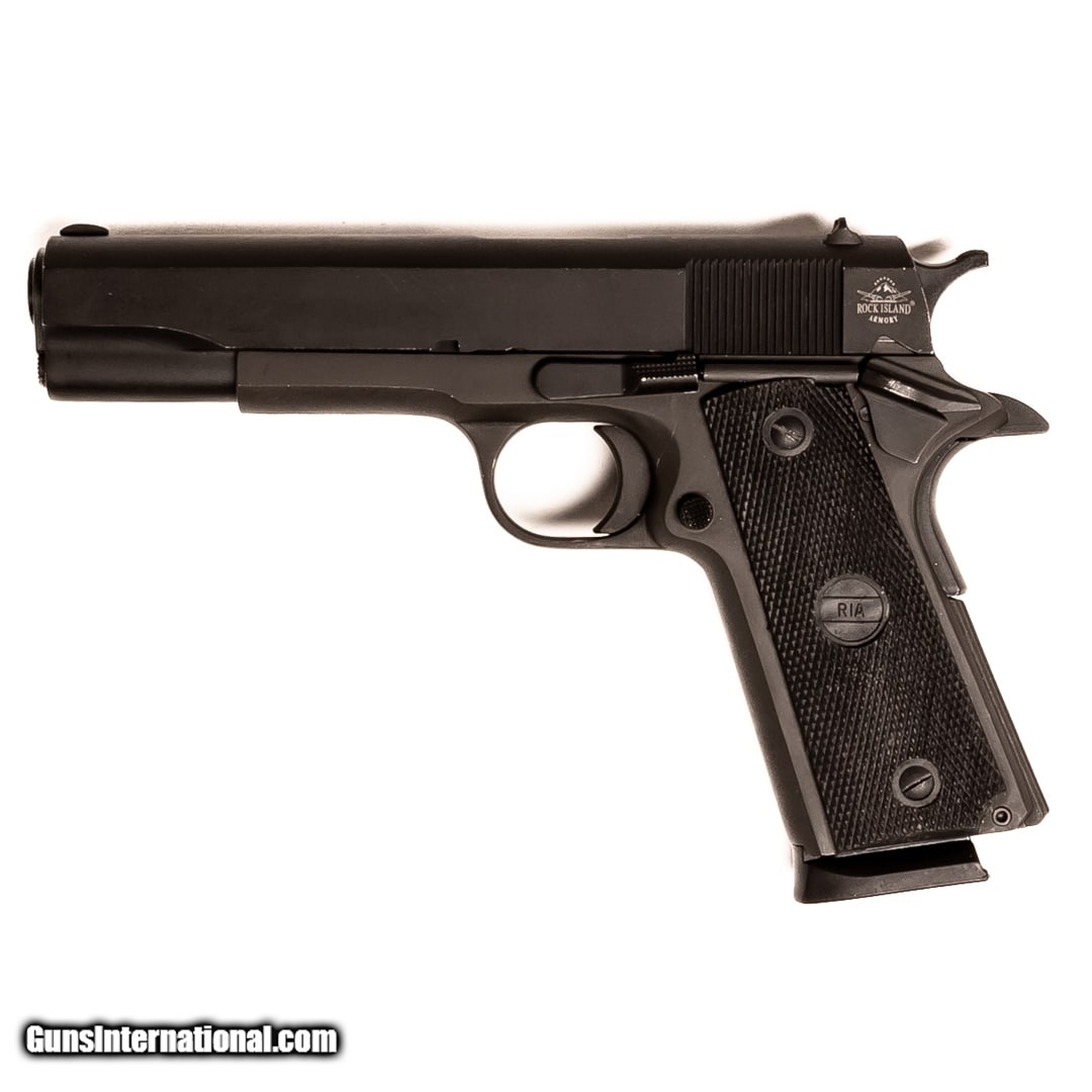 Description: Guns Listing ID: 673608 The Rock Island Armory M1911 A1-FS is a rugged and reliable handgun that‚‚s affordable yet well made. It‚‚s a great buy for those looking at entry-level 1911 without breaking the bank. Purchase of this M1911 A1-FS includes the original case, manual, and one 10-round magazine. Get the best bang for your buck when you get a Certified Used Firearm . When you see the Certified Used stamp on any of our firearms, you can be confident that you’re getting exactly what you want – a gun only in very good to excellent condition and held to the highest quality standard. All Certified Used Guns come with a ‘no questions asked’ return policy . PLUS, ALL CERTIFIED USED GUNS SHIP FRE SOLD Manufacturer: ROCK ISLAND ARMORY Model: M1911 A1-FS Caliber Info: 9MM LUGER (9X19 PARA) Condition: Used - Certified Barrels: 5 BARREL Finish: BLACK |
