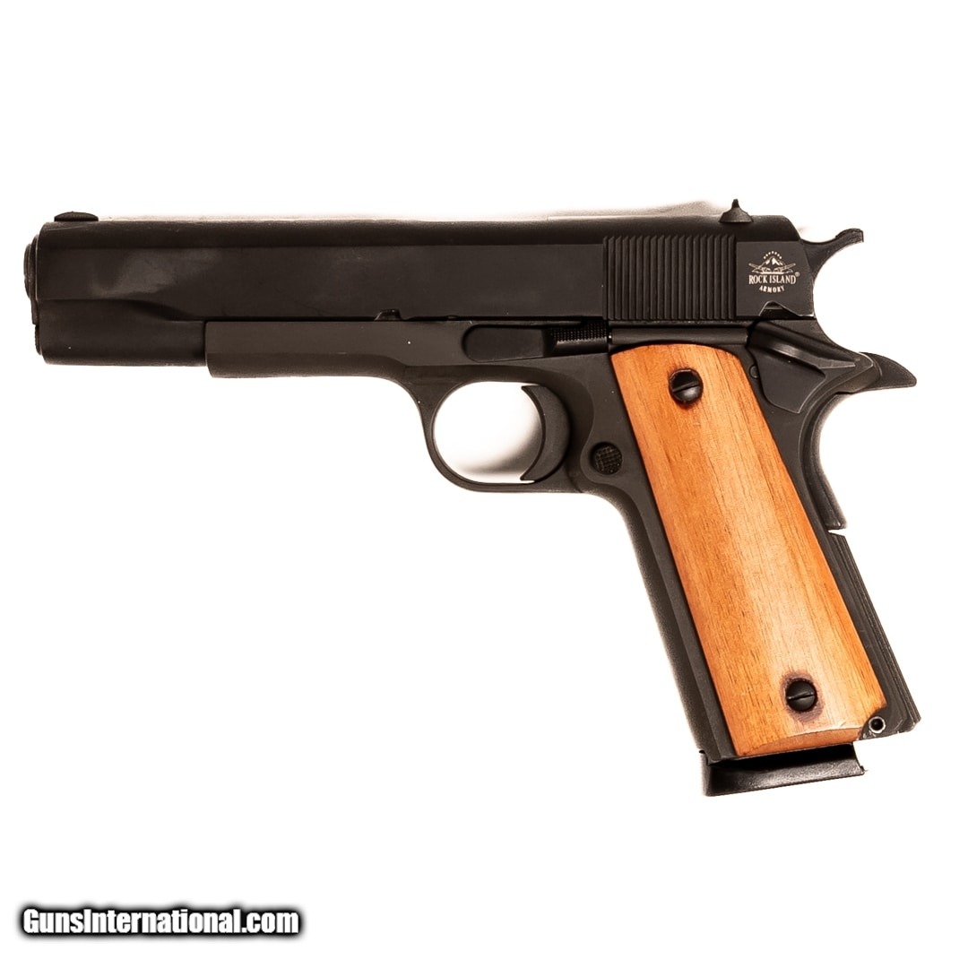 Description: Guns Listing ID: 821882 The Rock Island Armory M1911 A1-FS is a rugged and reliable handgun that‚‚s affordable yet well made. It‚‚s a great buy for those looking at entry-level 1911 without breaking the bank. There is a light scratch on the right side of the slide. Two 8-round magazines are included. Get the best bang for your buck when you get a Certified Used Firearm . When you see the Certified Used stamp on any of our firearms, you can be confident that you’re getting exactly what you want – a gun only in very good to excellent condition and held to the highest quality standard. All Certified Used Guns come with a ‘no questions asked’ return policy . PLUS, ALL CERTIFIED USED GUNS SHIP FRE SOLD Manufacturer: ROCK ISLAND ARMORY Model: M1911 A1-FS Caliber Info: .45 ACP Condition: Used - Certified Barrels: 5 BARREL Finish: BLACK |