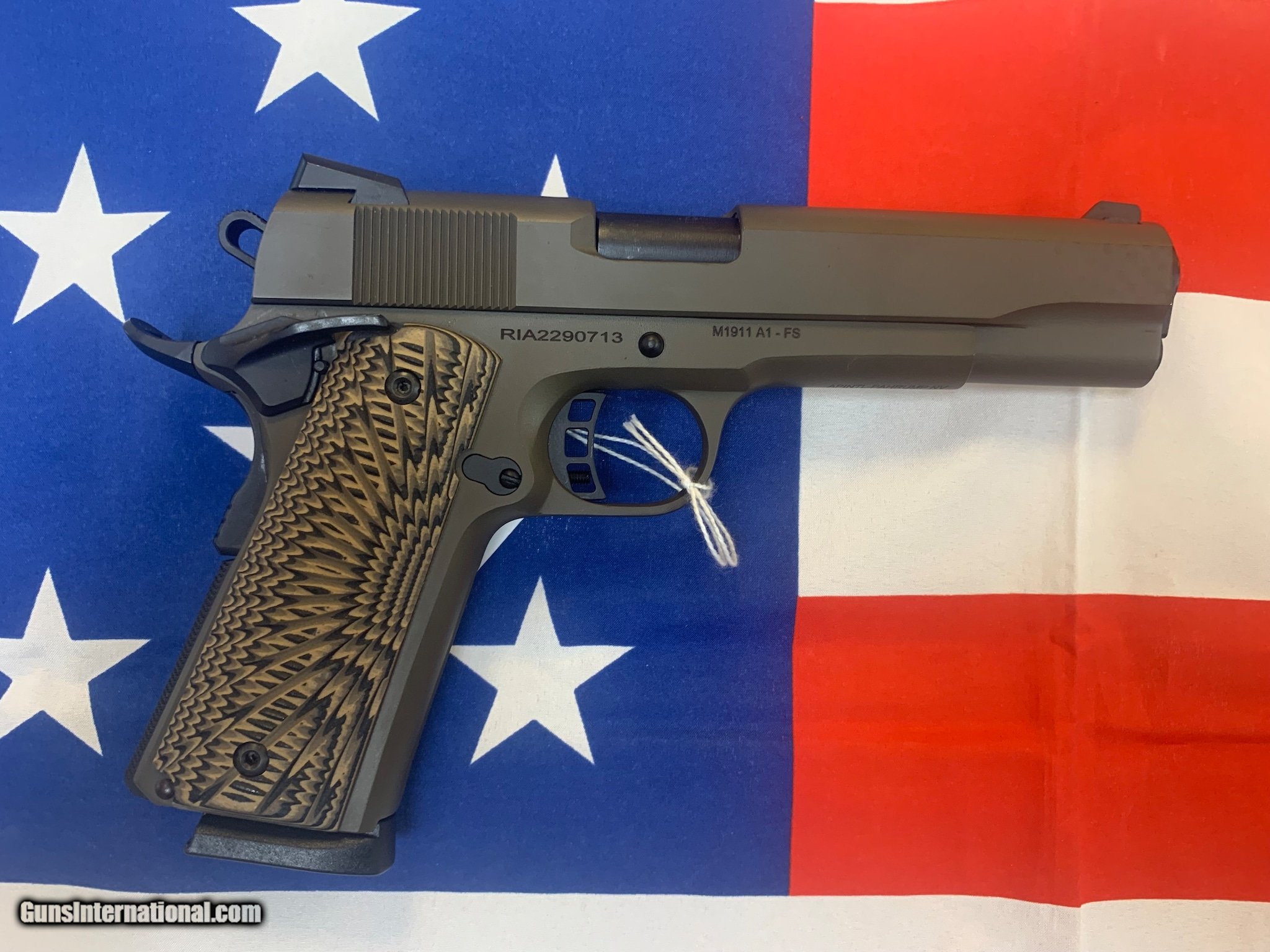 Description: Guns Listing ID: 867261 Very nice looking 1911 has some very minor wear such as some small scratches. It is a OD Green color. Comes with a 8 round magazine. Does not have the box. This pistol functions as it should with no issues. SOLD Manufacturer: ROCK ISLAND ARMORY Model: M1911 A1 FS Caliber Info: .45 ACP Condition: Used - Non-Certified Barrels: 5 BARREL Finish: GREEN |