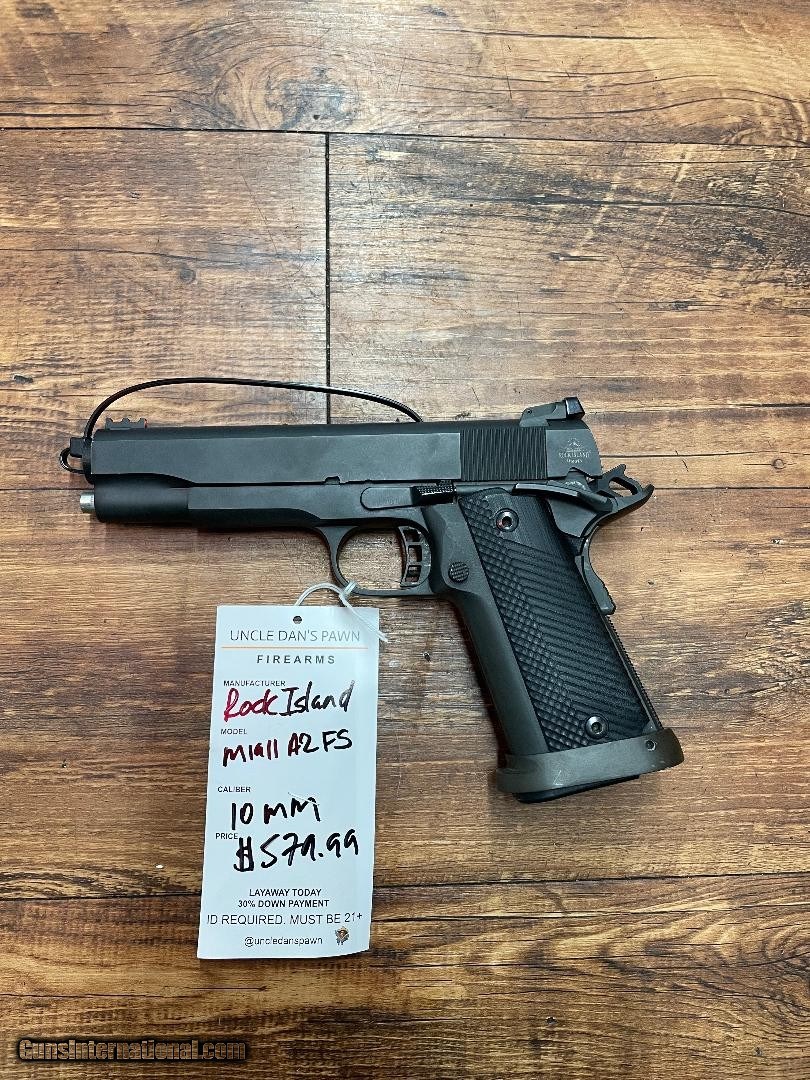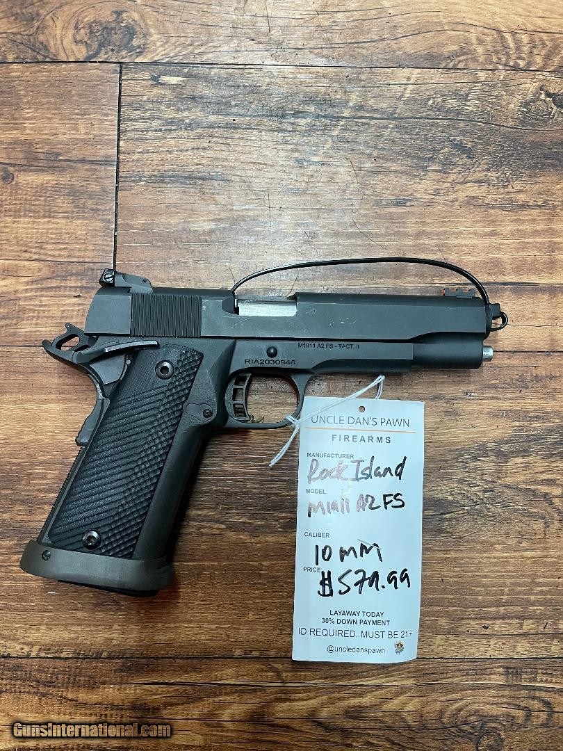 Description: Guns Listing ID: 572859 ROCK ISLAND M1911 A2 FS-TAC II 10MM SOLD Manufacturer: ROCK ISLAND ARMORY Model: M1911-A1 Tactical II Caliber Info: 10MM Condition: Used - Non-Certified Barrels: 4" BARREL Action: SEMI AUTOMATIC Finish: black matte |