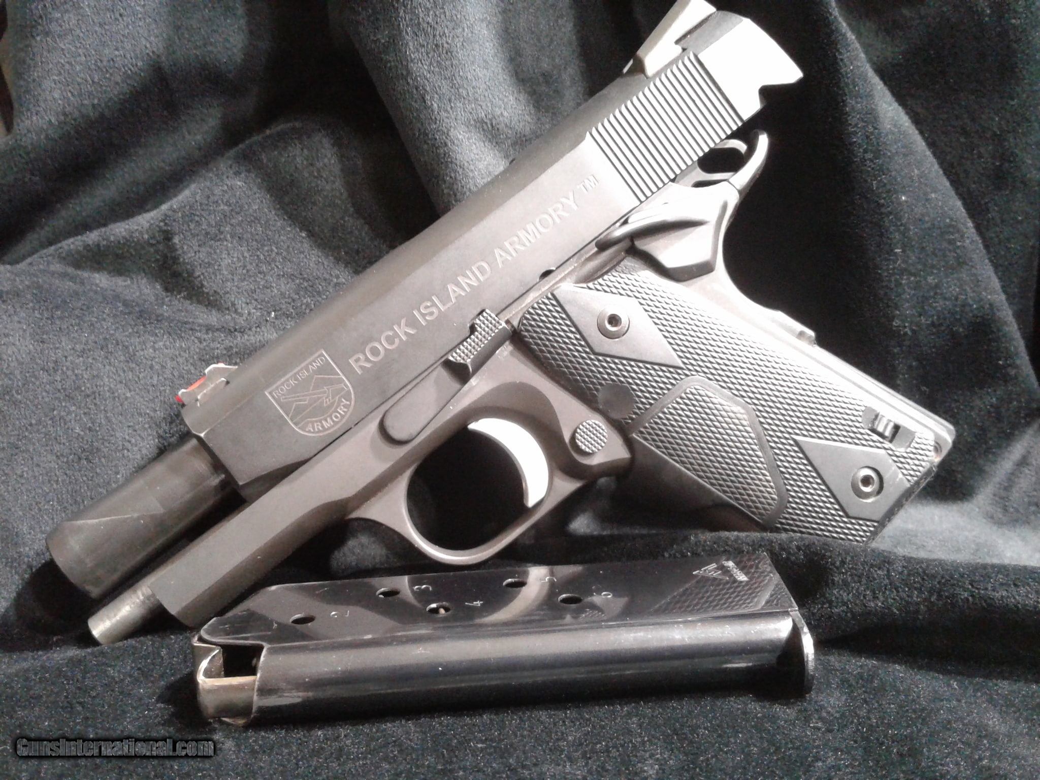 Description: Guns Listing ID: 382002 This item has signs of use and some holster wear. It comes with alternative grips but will come equipped with crimson trace grips with a functional laser sight! SOLD Manufacturer: ROCK ISLAND ARMORY Model: M1911 A1 Caliber Info: .45 ACP Condition: Used - Non-Certified Barrels: 2.5 BARREL Finish: BLACK |