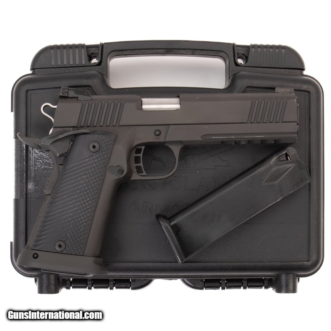 Description: Guns Listing ID: 479493 This Rock Island Armory comes with two 14-round magazines, the original case, owner‚‚s manual and is equipped with a C&S Kit, match trigger, a magwell, ambidextrous thumb safety, a Streamlight TLR-10 G flashlight/green laser and a Night Fusion front night sight. Get the best bang for your buck when you get a Certified Used Firearm . When you see the Certified Used stamp on any of our firearms, you can be confident that you’re getting exactly what you want – a gun only in very good to excellent condition and held to the highest quality standard. All Certified Used Guns come with a ‘no questions asked’ return policy . PLUS, ALL CERTIFIED USED GUNS SHIP FREE! SOLD Manufacturer: ROCK ISLAND ARMORY Model: M1911 A2 FS-TACT. Caliber Info: .45 ACP Condition: Used - Certified Barrels: 5.00 Action: SEMI AUTOMATIC Finish: BLACK Weight: 3 |
