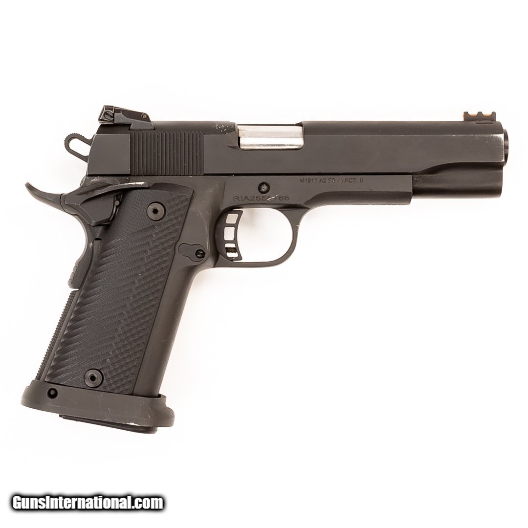Description: Guns Listing ID: 1342670 This model features an ambidextrous thumb safety and a fiber optic front sight. Three 16-round magazines are included. Get the best bang for your buck when you get a Certified Used Firearm . When you see the Certified Used stamp on any of our firearms, you can be confident that you‚‚re getting exactly what you want – a gun only in very good to excellent condition and held to the highest quality standard. All Certified Used Guns come with a ‚‚no questions asked‚‚ return policy . PLUS, ALL CERTIFIED USED GUNS SHIP FR SOLD Manufacturer: ROCK ISLAND ARMORY Model: M1911 A2 FS-TACT. II Caliber Info: 10MM Condition: Used - Non-Certified Barrels: 5 BARREL Finish: BLACK |