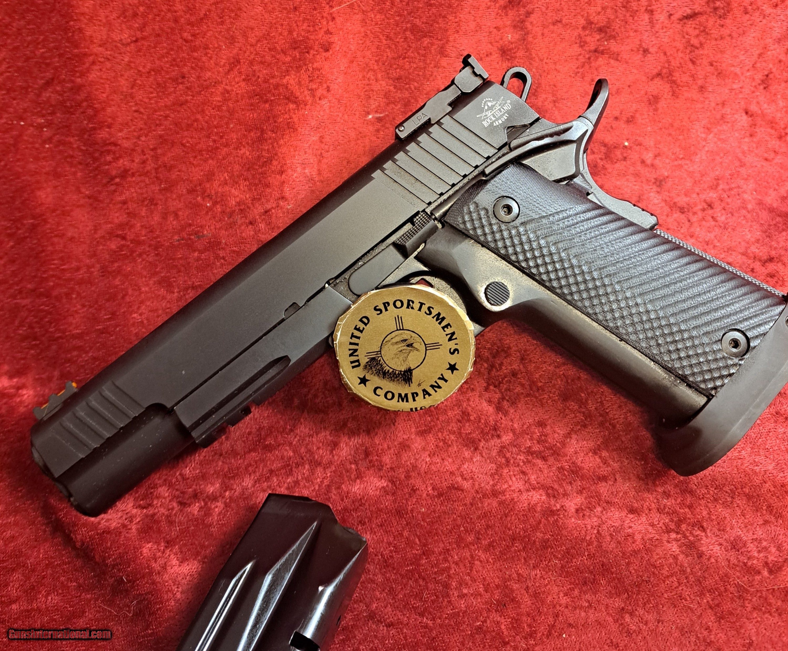 Description: Rock Island Armory M1911 A2 Rail .22 TCM 5" bbl SKU#56877 1911 Performance and Rock Island reliability Get ready to experience: power, precision, and performance. The TCM TAC Ultra FS is crafted from rugged 4140 Ordnance steel and fine-tuned with expert hand-fitting. This pistol is built to dominate the range. Designed to fire the original Armscor 22 TCM at a blistering 2000+ fps, it delivers penetrating impact with shockingly light recoil. Giving you the tactical edge with every shot! The 5-inch barrel, double-stack Flared magwell, and 17-round capacity make it a force to be reckoned with. While the skeletonized hammer and trigger, adjustable rear sight, and fiber optic front sight ensure pinpoint accuracy. Comfort comes from the G10 grips and legendary 1911 grip angle. Along with the Picatinny rail for your choice of light/laser combo. This pistol is engineered for serious performance. Whether you're hitting the range or looking for a high-velocity powerhouse, the TCM TAC Ultra FS HC is ready to impress. Don’t miss your chance to own this unstoppable machine! The 22TCM caliper is less likely to ricochet with the high FPS and available soft-point and hollow-point projectile! ARMOR SERIES ADVANTAGES + Increases Reliability + Reduces Maintenance + Improves Wear Resistance + Enhances Corrosion Protection + Reduces Holster Wear Armor Series from RAI: Enhances the wear resistance and improves reliability. This is not just a coating, it means that this model comes with a diamond-like carbon coating designed to drastically increase reliability, durability, and performance. Caliber: -22TCM- Brand: -ROCK ISLAND ARMORY- Model: -1911- Capacity: -17- Action Type: -Semi- Condition or Percentage: -New- Barrel Length Inches: -5"- OAL Inches: -8.75- Additional Info: -56877- SOLD |