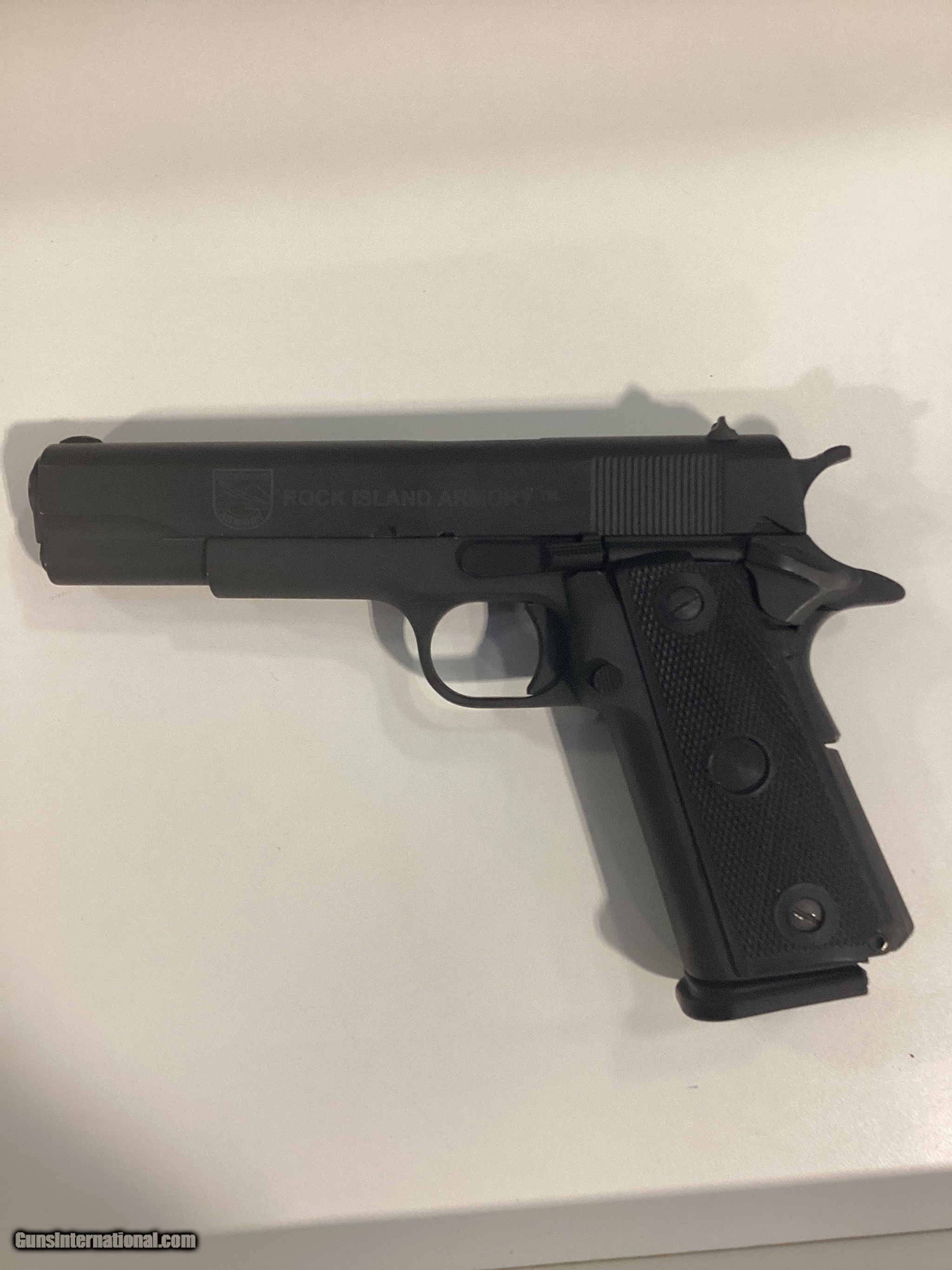 Description: Guns Listing ID: 982618 Comes with a Forrest green case, 3 mags. SOLD Manufacturer: ROCK ISLAND ARMORY Model: M1911-A2FS Caliber Info: .45 ACP Condition: Used - Non-Certified Barrels: 5 BARREL Finish: BLACK |