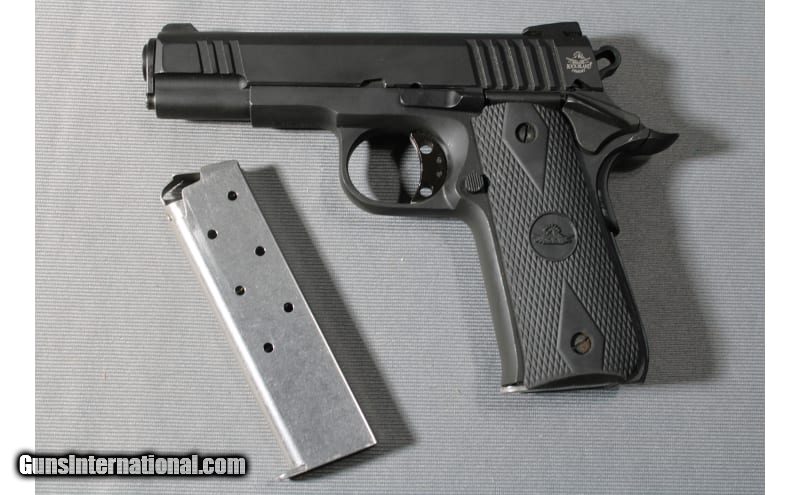 Description: Rock Island Armory M1911A 380 comes with two magazines. All the things you expect from a 1911 only smaller. Rubber grips. Finish is good showing little wear. .380 ACP SOLD Metal Condition: good Bore Condition: bright Barrels: 3 3/4 Weight: 1 lb 6 ozs Sights: factory sights Item Location: Council Bluffs, IA |