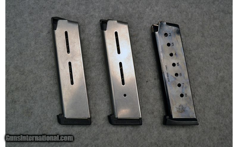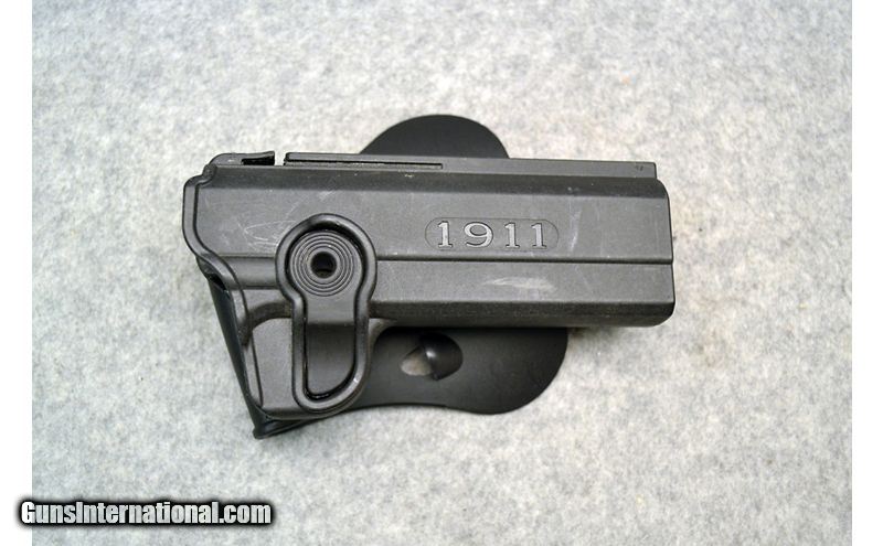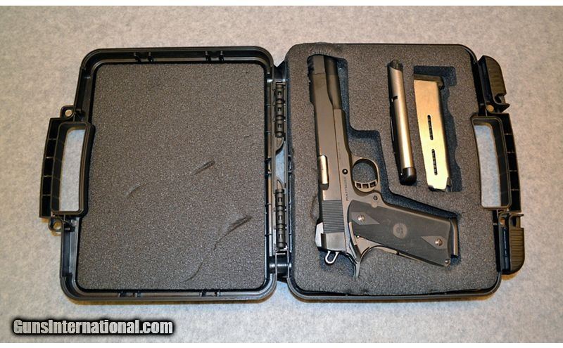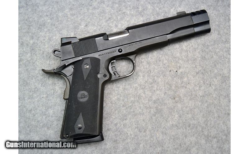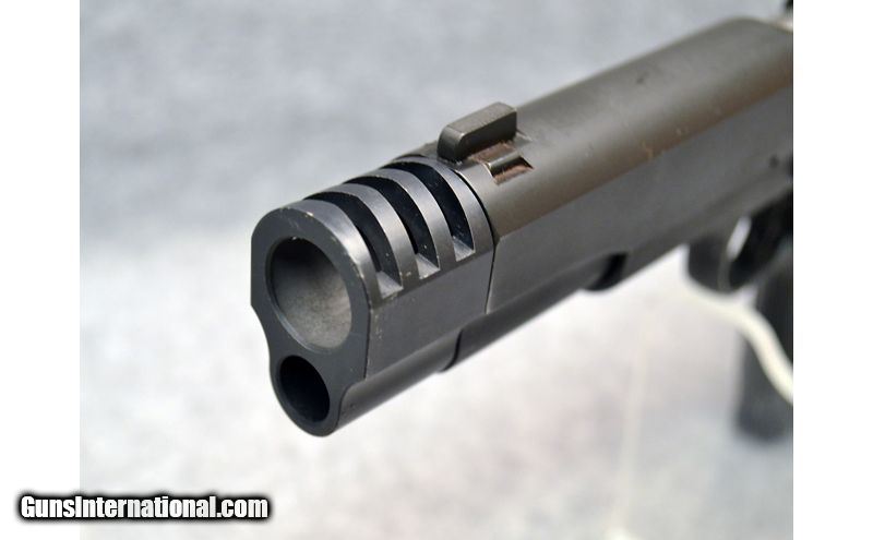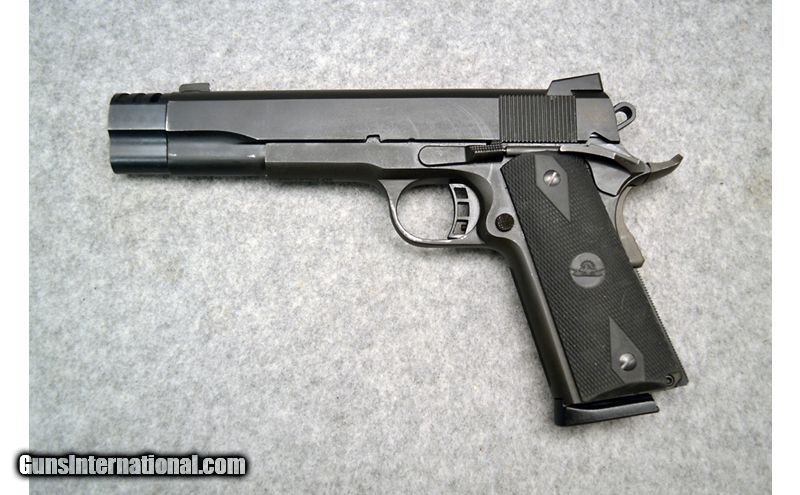 Description: The 1911 A1 FS is a representation of the original US GI Combat pistol of WW II. It's chambered in .45ACP with a 5" button rifled barrel supported by a full length guide rod. Includes a muzzle brake compensator, low profile angled rear sight along with skeletonized hammer and trigger with adjustable over travel stop and ambidextrous safety. Finished with a tough, parkerzied matte coating and comes with checkered rubber grips. Includes a holster, three magazines, and a hard case. .45 ACP SOLD Barrels: 5 Weight: 2.5 lbs. Item Location: christiana |