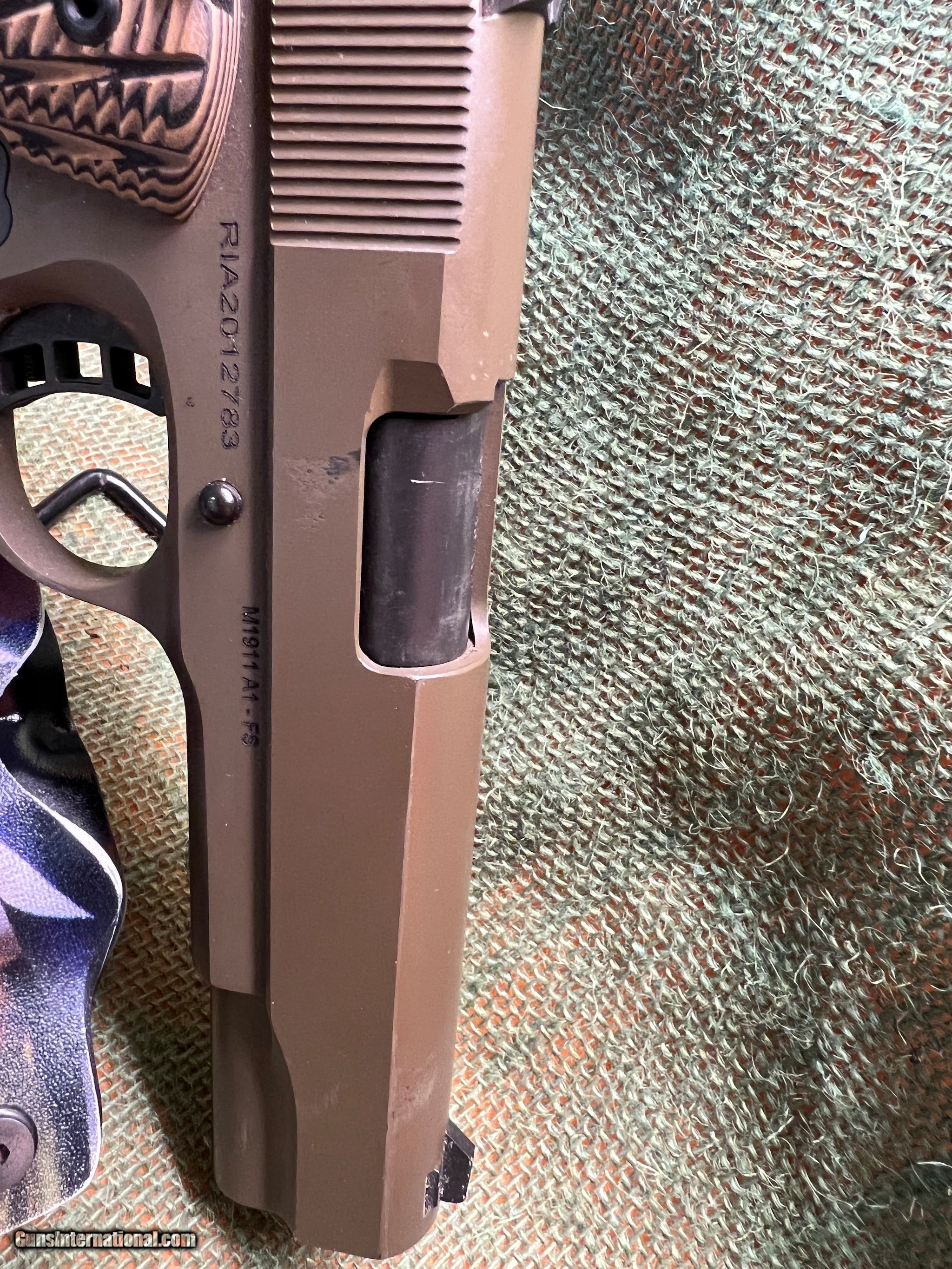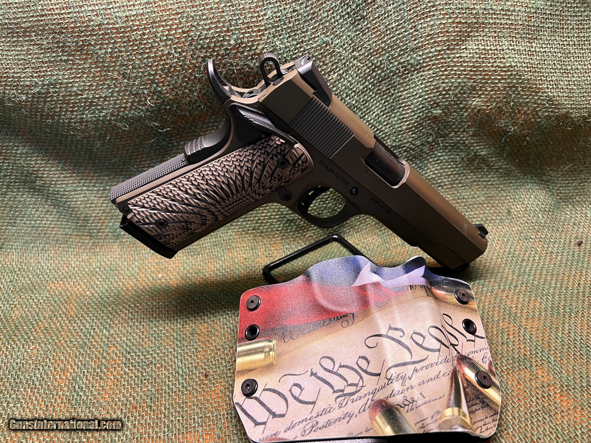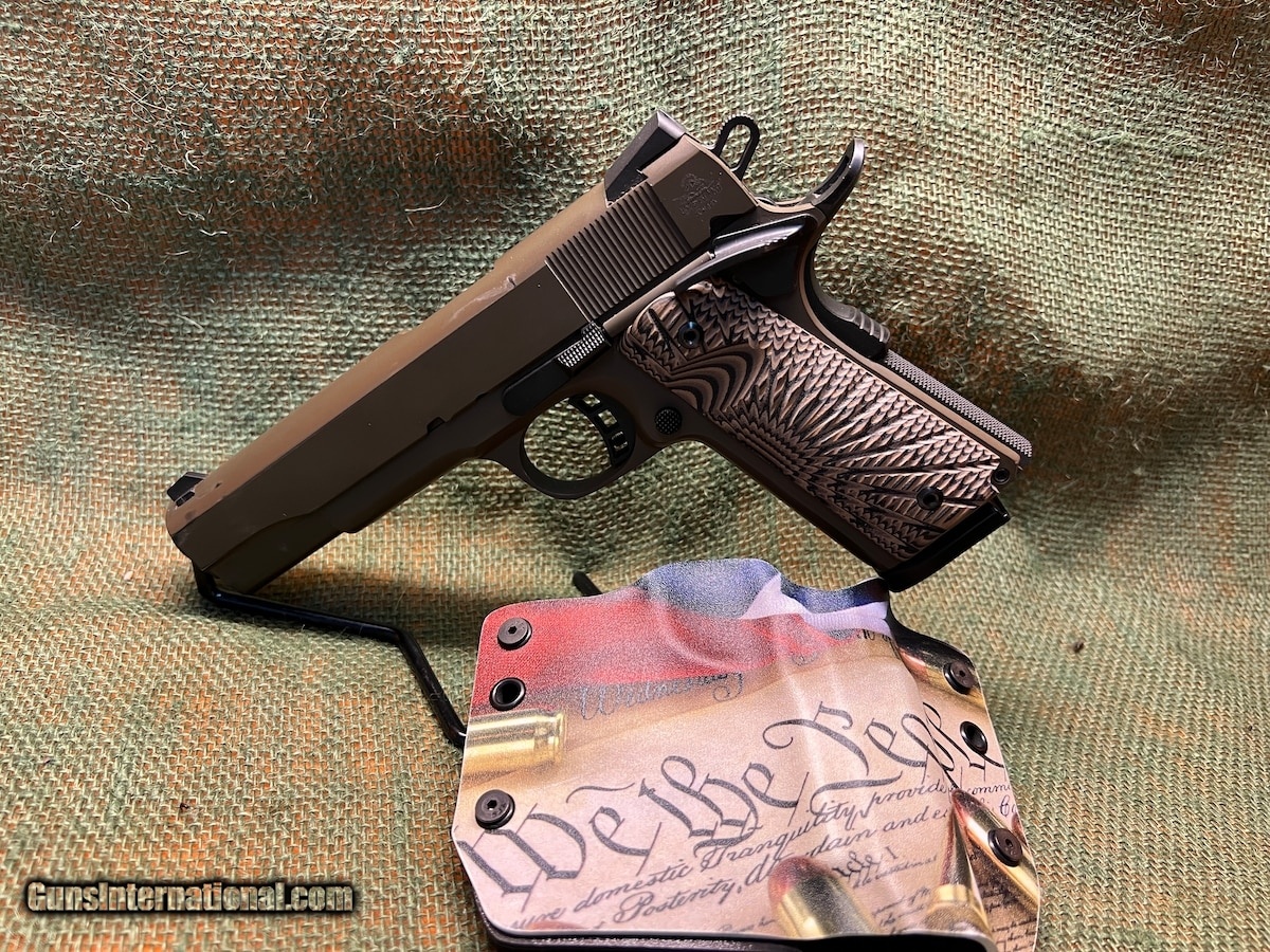 Description: Guns Listing ID: 543392 Used 1911 in Very Good Condition Color is a Davidson‚‚s Exclusive Patriot Brown Comes with a Bullseye Kydex Holster Comes with 1 Magazine Some holster wear shown in picture **No Bo SOLD Manufacturer: ROCK ISLAND ARMORY Model: ROCK STANDARD FS DS Caliber Info: .45 ACP Condition: Used - Non-Certified Barrels: 5" barrel |