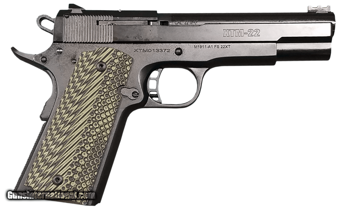 Description: Guns Listing ID: 550686 It‚‚s the first in a carefully designed 1911 and packs the powerful 22 magnum cartridge with a 14-round capacity. Engineered with a pinned, solid state 5” barrel with delayed blow back slide and our crisp, factory 4- to 6-pound trigger to offer match class accuracy and power. Includes low profile anti-snag angle front and rear sight with skeletonized hammer and trigger with adjustable over travel stop. The XT Magnum is finished with rock-tough cerakote coating, fitted checkered rubber grips and comfort extended beaver tail safety. - CALIBER 22 MAG - MAGAZINE (1) 14rd capacity - SIGHTS Front Drift Fiber Optic, Rear Fixed Drift - GRIPS Slash & Burn OD Green G1 SOLD Manufacturer: ROCK ISLAND ARMORY Model: XT MAGNUM Caliber Info: .22 WMR Condition: new Barrels: 5" BARREL Finish: BLACK CERAKOTE |