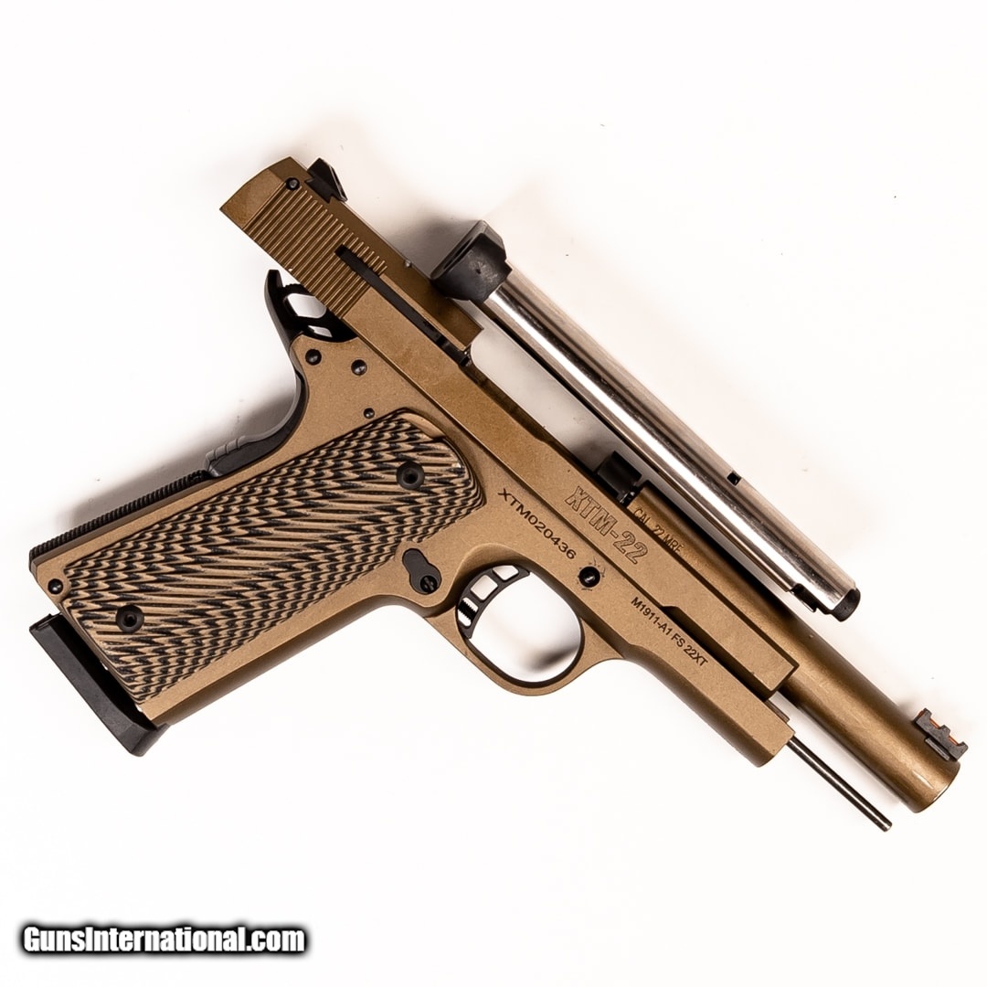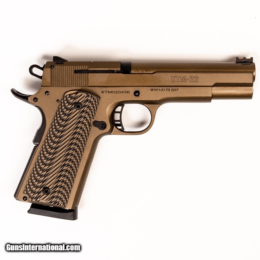 Description: Guns Listing ID: 534234 The RIA XTM-22 is a 1911 style handgun chambered in .22 Magnum. It has a pinned 5\" barrel and will make a great plinker, target practice pistol, and is even applicable for personal protection. 2-15 round magazines, the original case, and 2 extra plunger return pins are included. SOLD Manufacturer: ROCK ISLAND ARMORY Model: XTM-22 Caliber Info: .22 WMR Condition: Used - Certified Barrels: 4.5 BARREL Finish: BRONZE CERAKOTE |