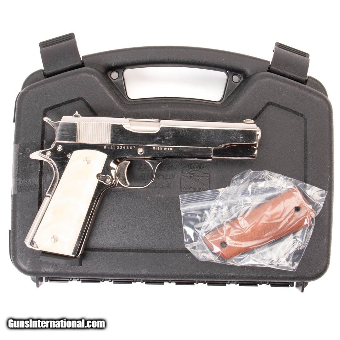 Description: Guns Listing ID: 498420 This Rock Island Armory M1911 A1FS features mother-of-pearl grips and a thumb safety. Purchase includes the original case, manual, and one 8-round magazine. Get the best bang for your buck when you get a Certified Used Firearm . When you see the Certified Used stamp on any of our firearms, you can be confident that you‚‚re getting exactly what you want – a gun only in very good to excellent condition and held to the highest quality standard. All Certified Used Guns come with a ‚‚no questions asked‚‚ return policy . PLUS, ALL CERTIFIED USED GUNS SHIP FR SOLD Manufacturer: ROCK ISLAND ARSENAL Model: M 1911-A1FS Caliber Info: .45 ACP Condition: Used - Certified Barrels: 5.00 BARREL Action: SEMI AUTOMATIC Finish: nickel Weight: 2.6 |