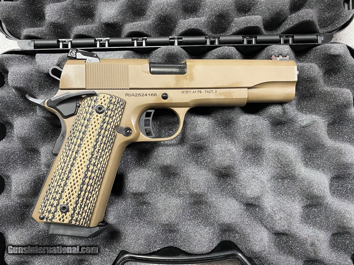 Description: Guns Listing ID: 676561 ROCK ISLAND M1911 A1 FS TACT II W/ CASE CALIBER - 45 ACP SOLD Manufacturer: ROCK ISLAND Model: M1911 A1 FS TACTII Caliber Info: 45 ACP Condition: Used - Non-Certified Barrels: 4 BARREL Finish: TAN |