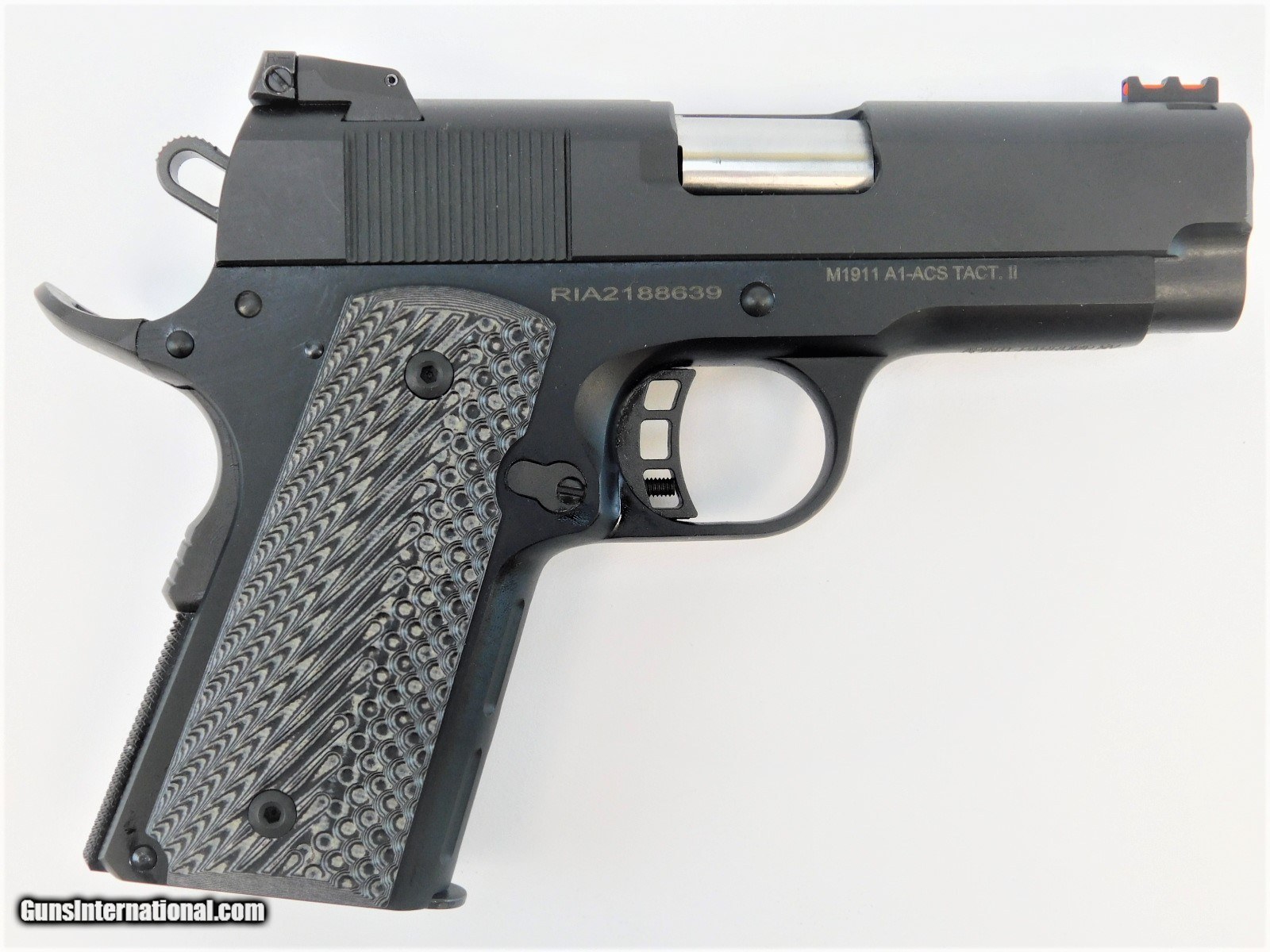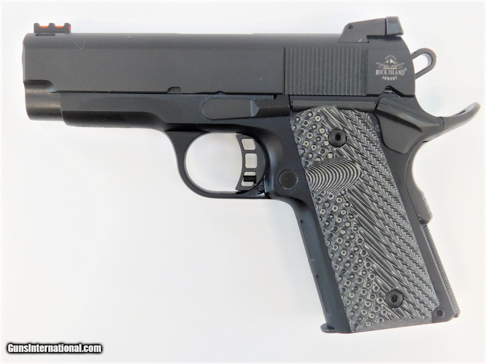 Description: BRAND NEW IN THE BOX AND READY TO SHIP! BUY IT NOW!! Manufacturer: Armscor - Rock Island Model: M1911-A1 Rock Ultra CS-L Combo Sku: 56633 Caliber: 9mm / .22 TCM Action: Single/Double Barrel Length: 3.6" Capacity: 8 Rounds Sights: Fiber Optic - Front, Adjustable - Rear Frame: Alloy Finish: Black Oxide Overall Length: 7.38" Grips: G10 Weight: 2.5 lbs The Rock Ultra CS Lightweight pistol is built in traditional 70 series design with an aluminum frame and delivered with our precise engineering standards and first rate upgrades. This pistol comes chambered for 9mm and .22 TCM with 3.62” button rifled barrel supported by a full length guide rod. Includes a dovetail fiber optic front sight and LPA MPS1 type adjustable rear sight. Also include skeletonized hammer and trigger with adjustable over travel stop and ambidextrous safety, which comes standard in the Rock series. The Rock Ultra CS-L is finished with a tough parkerized coating and adds a battle ready G10 tactical grips. True to all Rock Island 1911s the Rock Ultra comes with a crisp factory 4- to 6-pound trigger to give you a great experience right out of the box. KNOW YOUR LOCAL AND STATE LAWS!! ORDERS WILL ONLY BE ACCEPTED FROM US RESIDENTS OF THE LOWER 48 STATES, ALASKA AND HAWAII. OUR FFL CLASS DOES NOT ALLOW FOR THE EXPORT OF FIREARMS, THEREFORE WE CANNOT SHIP OUT OF THE US. IF YOU ARE INTERESTED IN PURCHASING THIS ITEM, PLEASE COMPLETE YOUR ORDER BY REFERRING TO THE "SELLER'S INFORMATION" ABOVE. SOLD |