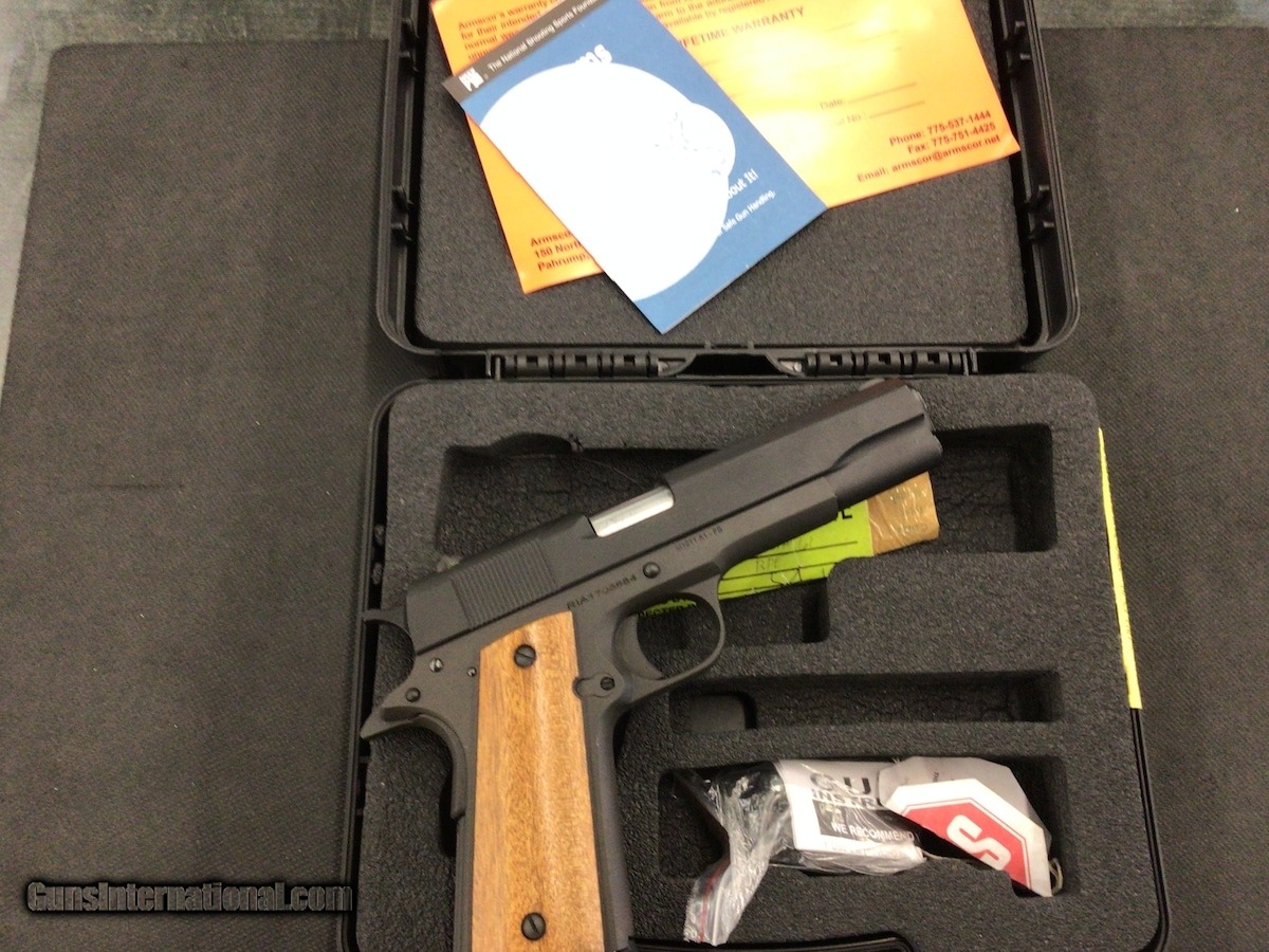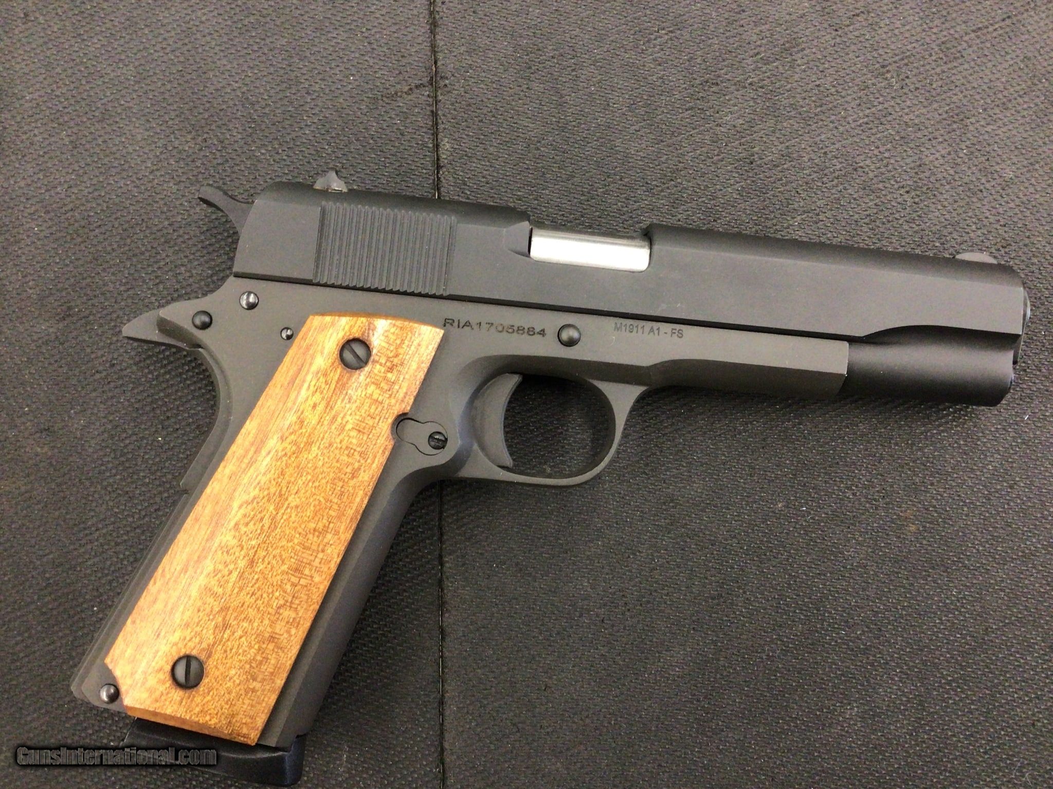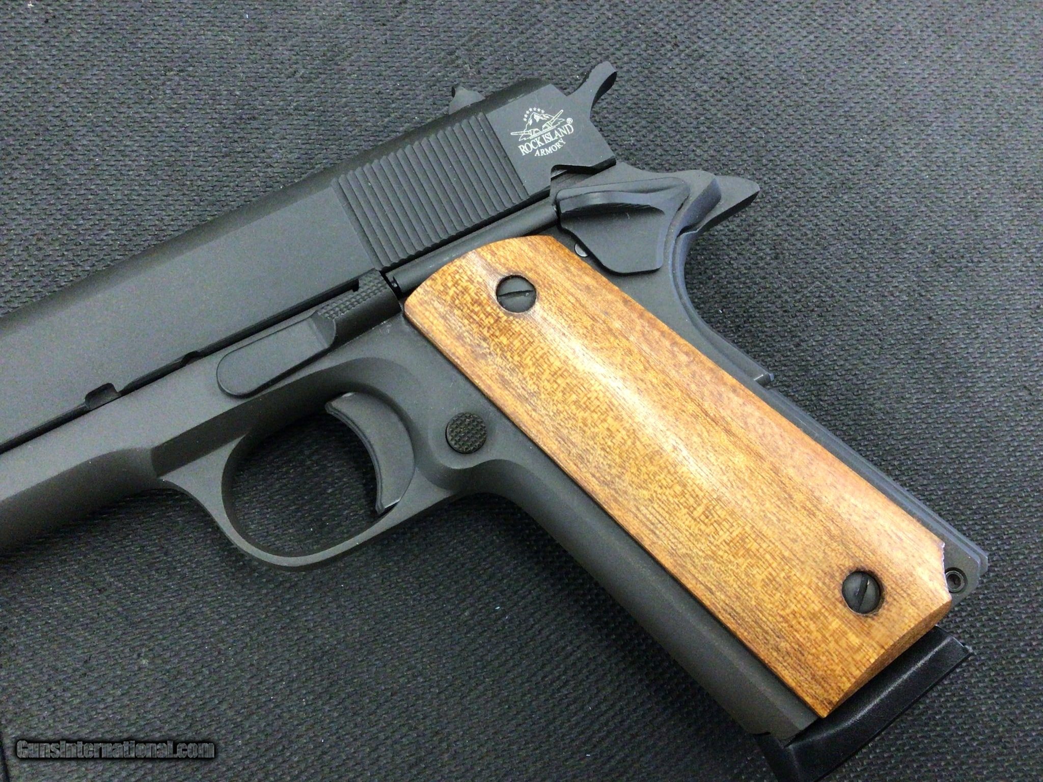 Description: Guns Listing ID: 496239 Rock Island/Armscor M1911-FS in 45acp. Nice condition in original box. Wood grips, 1 magazine. Some light freckling in the finish on the slide. SOLD Manufacturer: ROCK ISLAND Model: M1911A1 Caliber Info: .45 ACP Condition: Used - Non-Certified Barrels: 5 BARREL Finish: PARKERIZED |