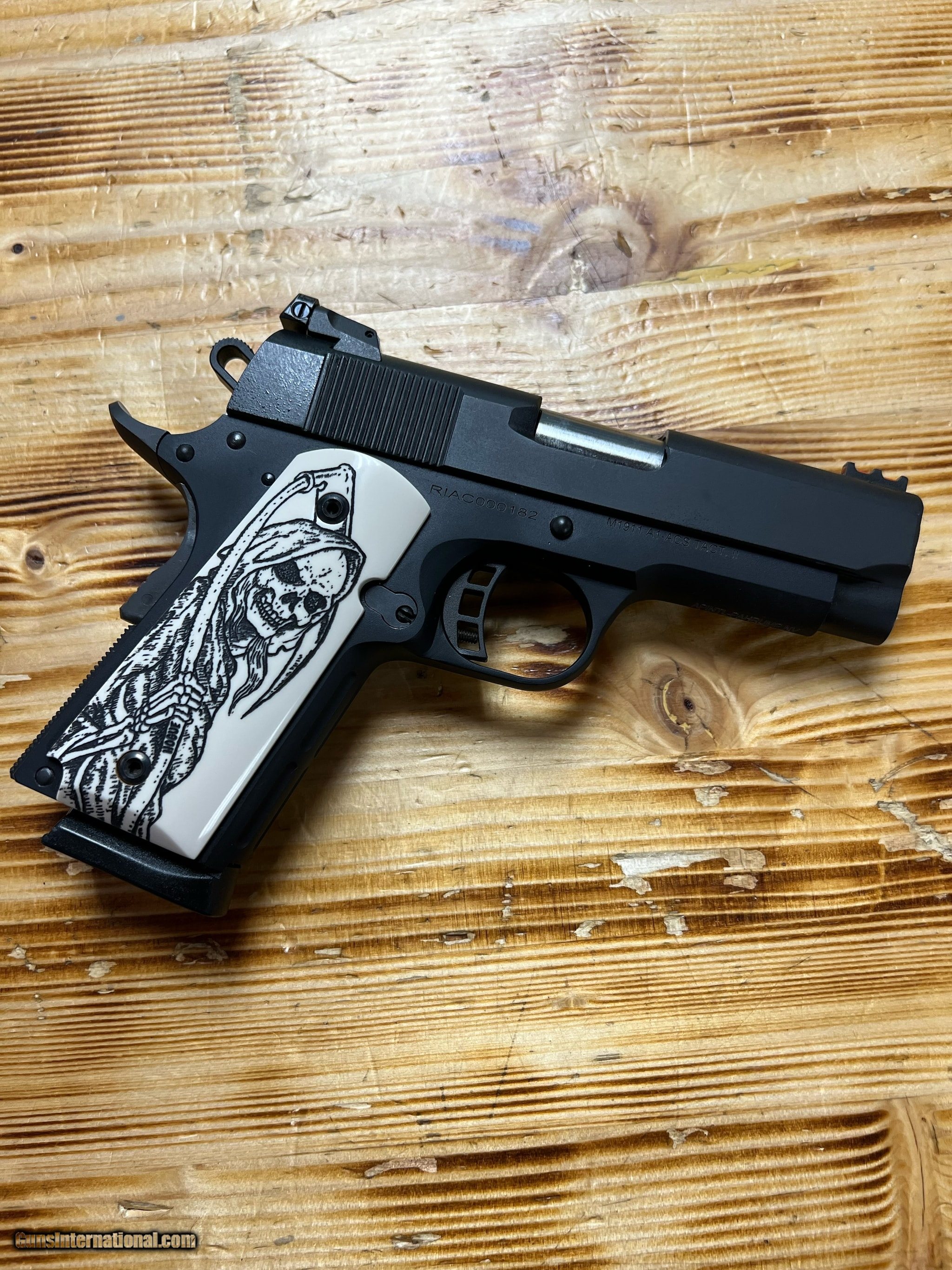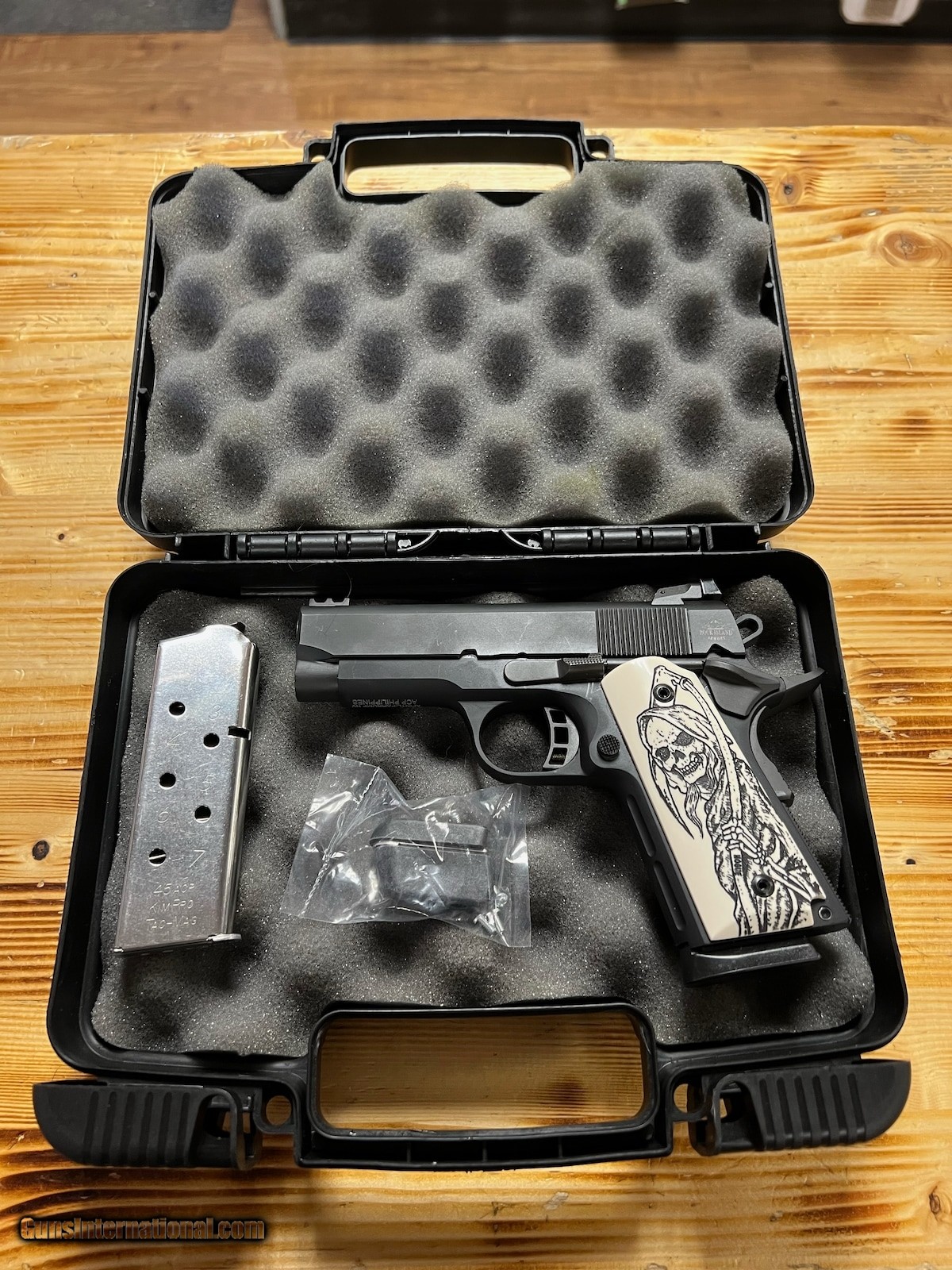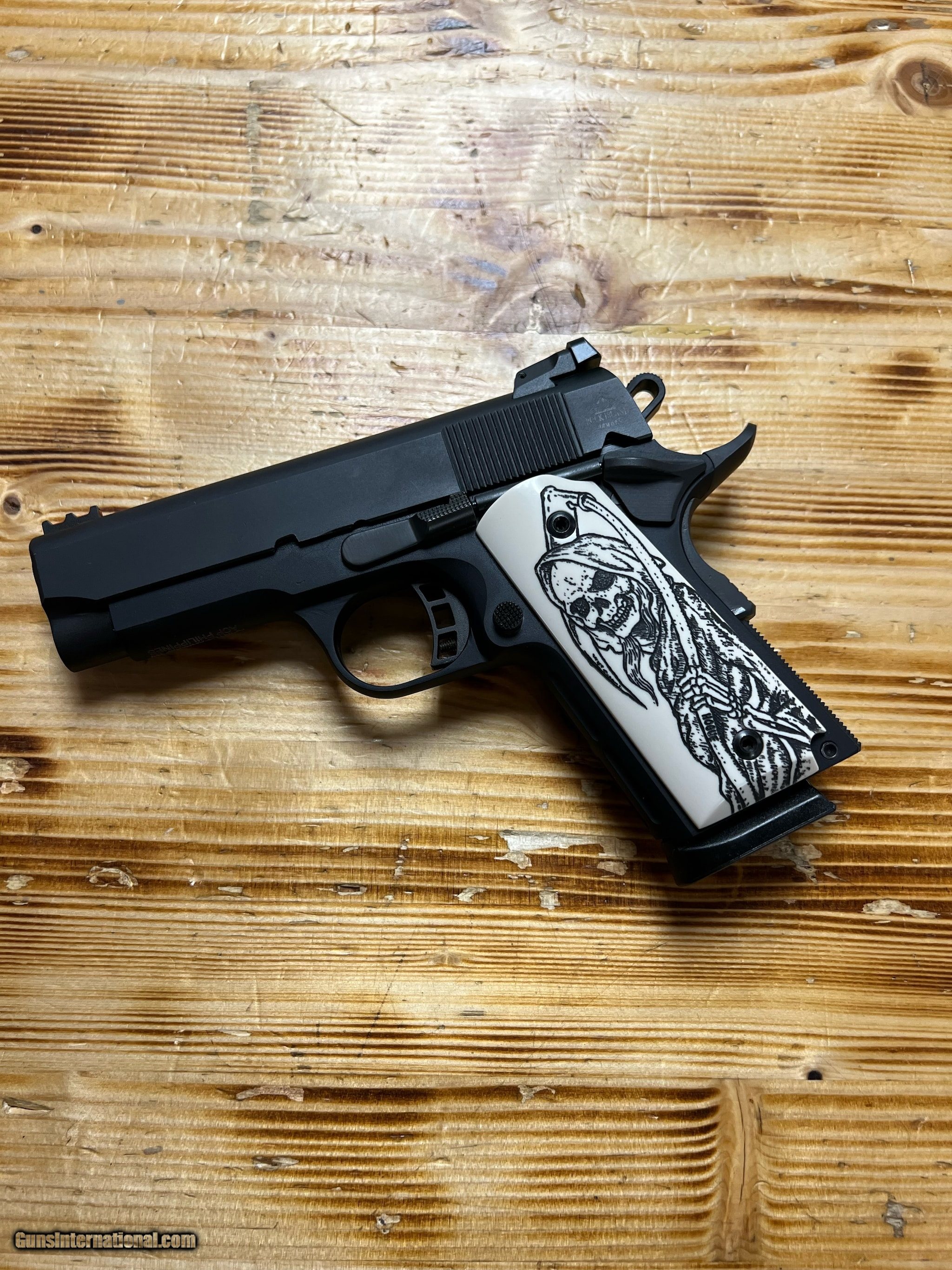 Description: Guns Listing ID: 500829 This firearm is in very good condition and shows only very minor scuffs in the finish. No major flaws. Includes the original box, two magazines, as well as the factory paperwork and magazine grip extensions. Has replacement grips that feature the Grim Reaper. Has an orange fiber optic front sight and dual white dot rears. SOLD Manufacturer: ROCK ISLAND Model: ROCK ULTRA CS-L Caliber Info: .45 ACP Condition: Used - Non-Certified Barrels: 3.5" barrel Finish: BLACK PARKERIZED |