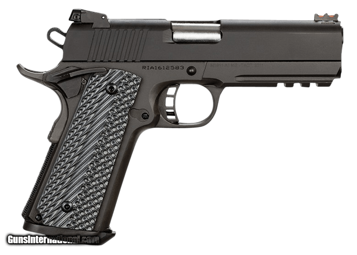 Description: Guns Listing ID: prod218389 The TAC series is Rock Island Armory‚‚s most versatile, all-around 1911 and includes precise engineering elements built with every tactical advantage and choice you could want. All TAC series 1911s include a full-length under-picatinny tactical rail to allow any choice of custom attachment. Skeletonized hammers and triggers with over travel stop provide adjustments important to anyone looking for a fully capable 1911. The TAC Ultra mid-size introduces a full tactical rail and is built with a 4.25\" button rifled barrel supported by a full length guide rod and full dust cover. It includes a low profile adjustable rear sight and high visibility fiber optic front sight and is also fitted with a skeletonized hammer and trigger with adjustable over travel stop. The TAC Ultra is finished with a tough parkerzied matte coating and adds battle ready G10 tactical grips. Like all Rock Island 1911s, the Tac Ultra comes with a crisp factory 4- to 6-pound trigger to give you a great experience right out of the box SOLD Manufacturer: ROCK ISLAND ARMORY Model: TRA MS Caliber Info: 10MM Condition: new Barrels: 4.25 BARREL Finish: BLACK PARKERIZED |