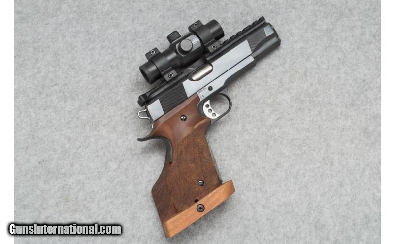 Description: Used. Factory guaranteed to shoot 1.5 inch groups at 50 yds. with 185 gr. Federal Gold Medal Match Semi-Wadcutters. SOLD Caliber Info: .45 ACP Metal Condition: Excellent Wood Condition: Excellent Bore Condition: Clean and sharp Barrels: 5" - Throated NM KART barrel with NM bushing Triggers: RRA Match aluminum speed trigger (3.5 lb. pull) Stock: Sculpted walnut target grips with stippling Weight: 48 oz. (with target grips & red dot) Sights: RRA Bullseye rib; Red dot optic Extras: Sprinco recoil reducer; original rosewood grips; 8-9-10-12 & 18 lb. recoil springs; Red dot; (2) magazines; bushing wrench & manual. Item Location: Sun Prairie, WI |