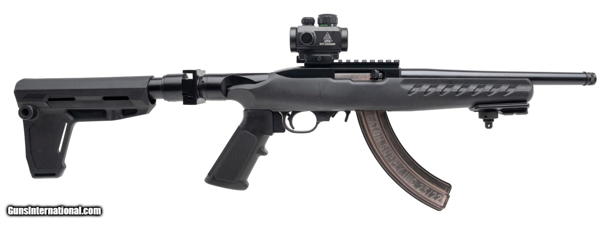 Description: "SN: 491-19011. Modern production, .22LR with a 10"" threaded barrel. Bore is very good. Semi-auto tactical rimfire pistol with a UTG red/green dot sight, Strike Industries side folding brace, Copper Custom Armament pistol brace adapter, picatinny accessory rail, matte black finish, and black polymer stock. Finish & stock show moderate handling marks throughout, and a piece of the brace has been sheared off. Overall condition is very good. Price: $349.95 Contact Seller |