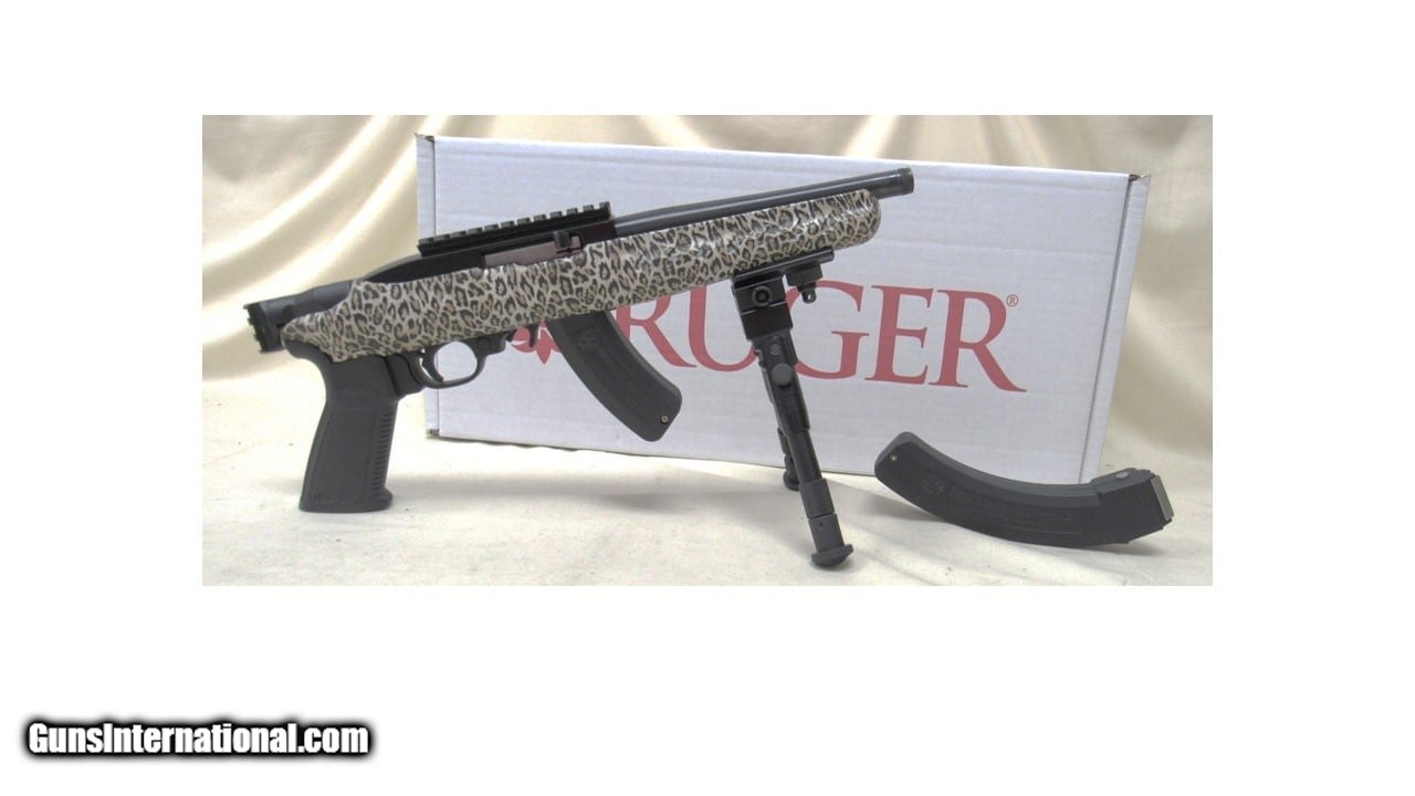 Description: Guns Listing ID: 1208037 Ruger 22 Charger, Semi-automatic Pistol in 22LR, 8\" Threaded Barrel, Alloy Steel, Cerakote Finish, Polymer Pistol Grip, Animal Skin Style Camo Stock, Picatinny Rail Installed, (2) Magazines, (1)15 Round and (1) 25-Round, Includes Adjustable Bipod and Box SOLD Manufacturer: RUGER Model: 22 CHARGER Caliber Info: .22 LR Condition: Used - Non-Certified Barrels: 8 BARREL Finish: CAMO |