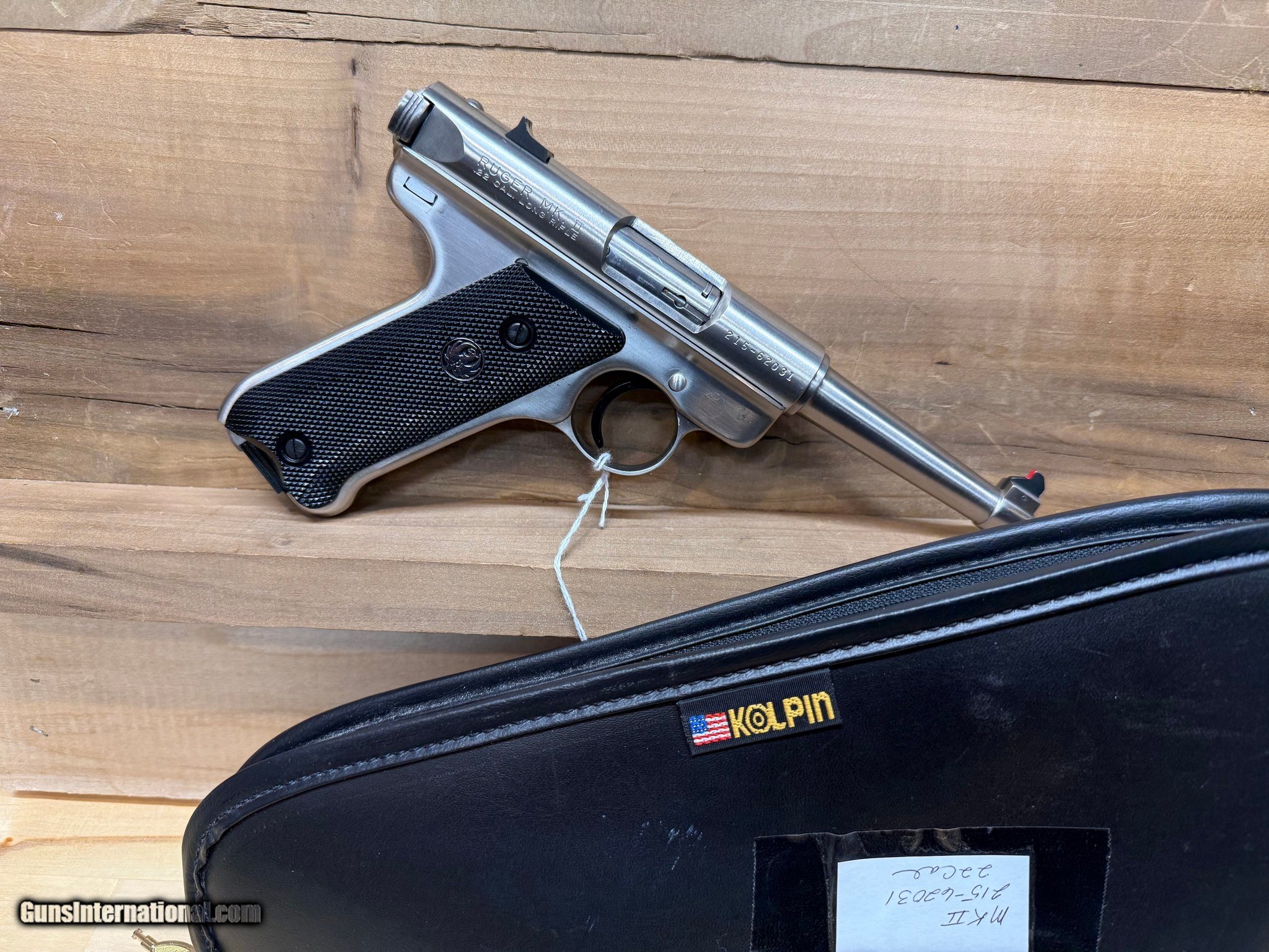 Description: Guns Listing ID: 548635 RUGER MK II 22LR 4.75\" STAINLESS SEMI AUTO PISTOL 1-10RD MAG / KOPLIN BLACK SOFT CASE THANKS FOR LOOKING (CM2) SOLD Manufacturer: RUGER Model: MKII STAINLESS Caliber Info: .22 LR Condition: Used - Non-Certified Barrels: 4.75 BARREL Action: SEMI AUTOMATIC Finish: stainless |
