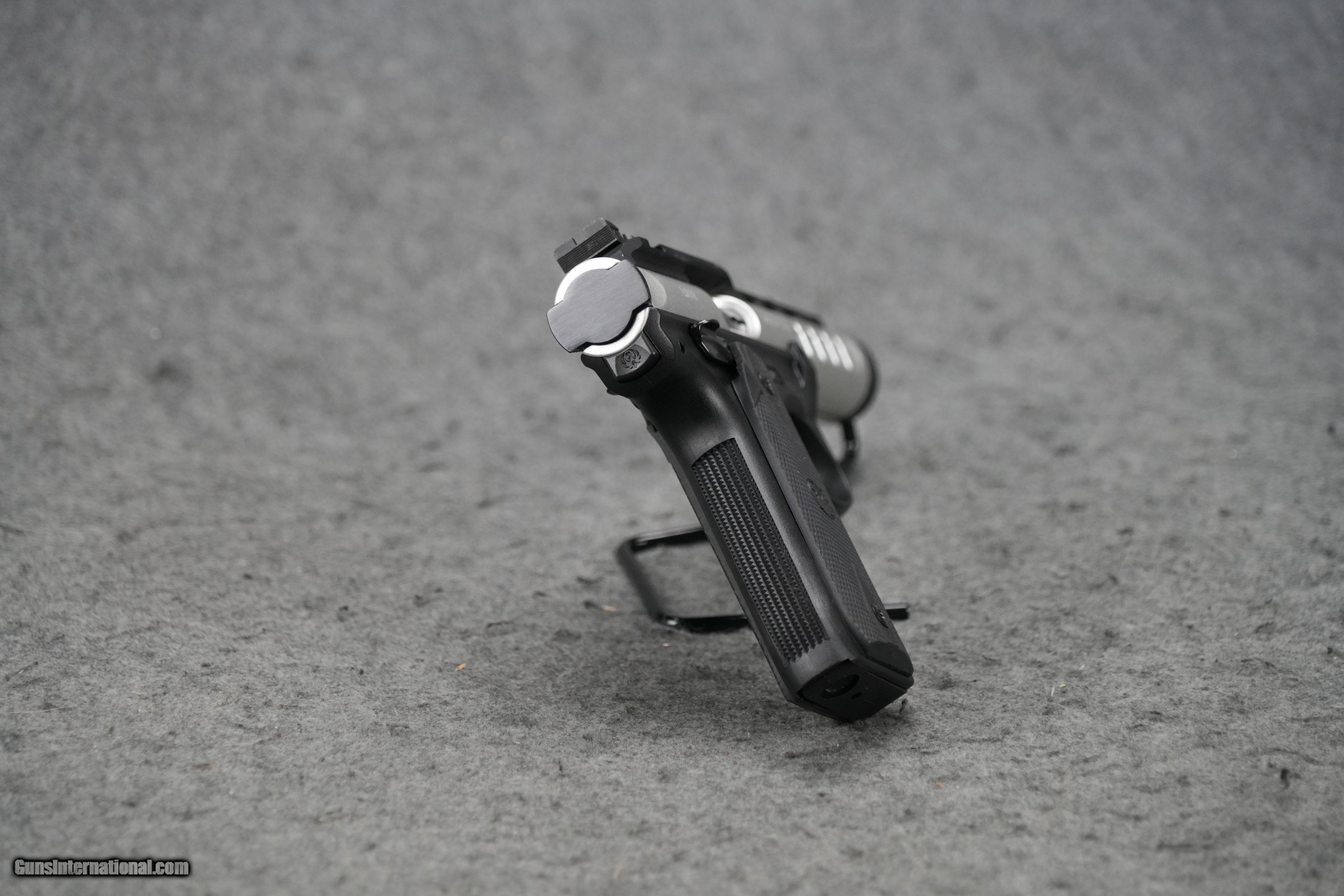 Description: Accurate sighting system features an adjustable rear sight, fiber optic front sight on a ventilated rib and mounting position for Shield™ RMS pattern optics to co-witness with the iron sights (optic not included). Simple, one-button takedown for quick and easy field-stripping and proper chamber-to-muzzle cleaning. Pressing a button in the back of the frame allows the barrel-receiver assembly to tilt up and off the grip frame without the use of tools. Comfortable, precision-molded polymer grip frame with a serrated frontstrap and checkered backstrap. Features a lightweight, ventilated, aerospace-grade aluminum receiver and a tensioned stainless steel barrel. Features a 1/2"-28 thread pattern for popular muzzle accessories (thread protector included). Cold hammer-forged barrel results in ultra-precise rifling that provides exceptional accuracy and longevity. Ergonomic bolt stop. Checkered, 1911-style grip panels for a great appearance and comfortable, non-slip hold. Internal cylindrical bolt construction ensures permanent sight-to-barrel alignment and higher accuracy potential than conventional moving-slide designs. Contoured ejection port and easy-to-grasp bolt ears allow for durable and reliable operation round after round. Ambidextrous manual safety can be converted to left-side only with included washer. Features a conveniently located push-button magazine release on the left side of the frame. Magazine drops free on release for convenient reloading. Magazine disconnect prevents discharge when the magazine has been removed. Also includes: two, 10-round magazines. Capacity 10+1 Receiver Material Aluminum Front Sight Fiber Optic Barrel Length 4.40" Grip Frame Polymer Grips Checkered 1911-Style Finish Clear Anodized * Width 1.22" Rear Sight Adjustable Barrel Style Threaded Thread Pattern 1/2"-28 Weight 25 oz. Overall Length 8.40" Height 5.64" Grooves 6 Twist 1:16" RH SOLD Handgun Caliber: .22 Long Rifle Manufacturer: Ruger Model: Mark IV 22/45 Lite Barrel Length: 4.4" Barrel Condition: BRAND NEW |